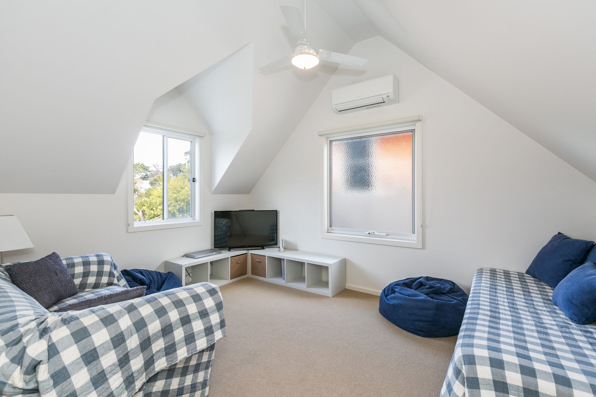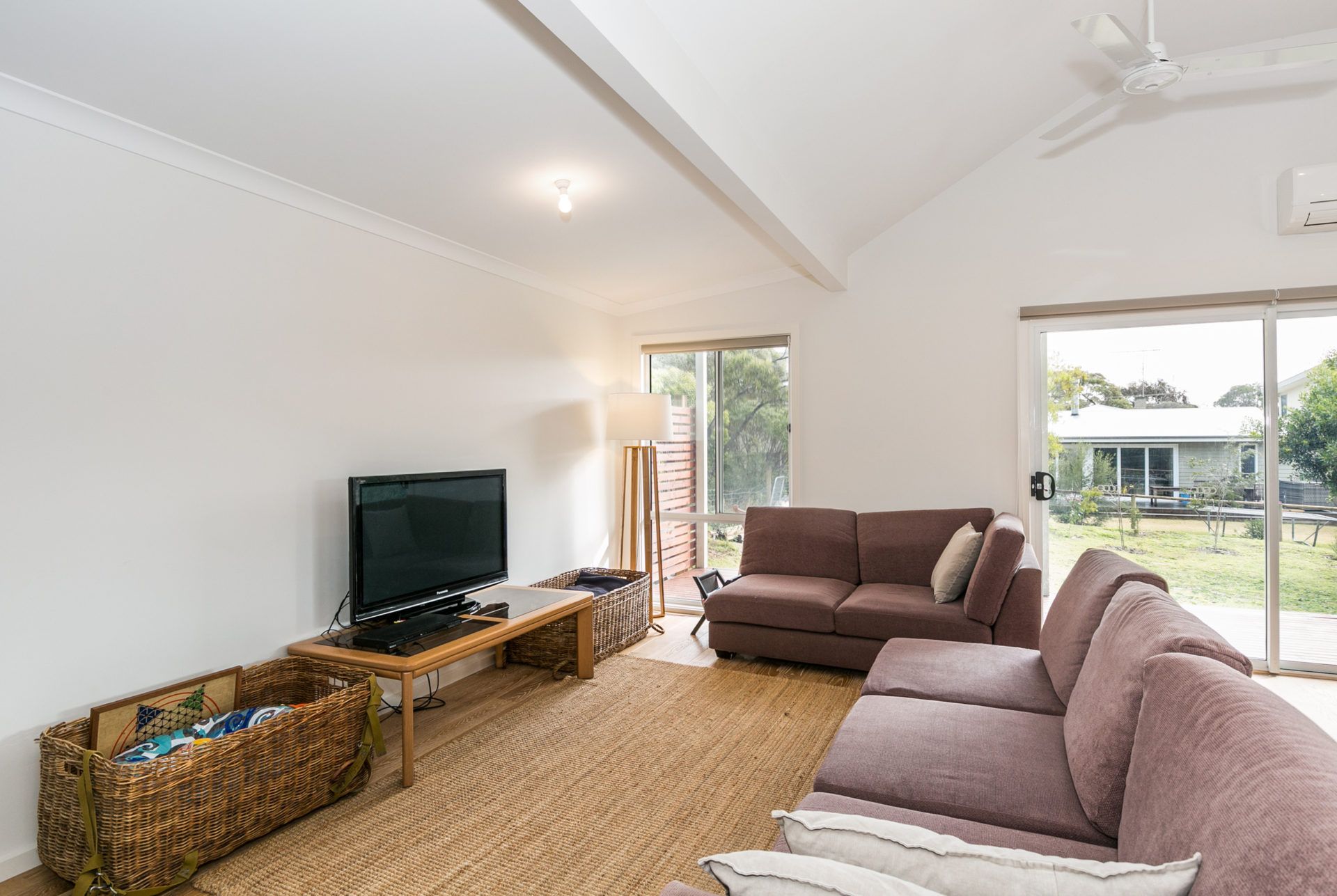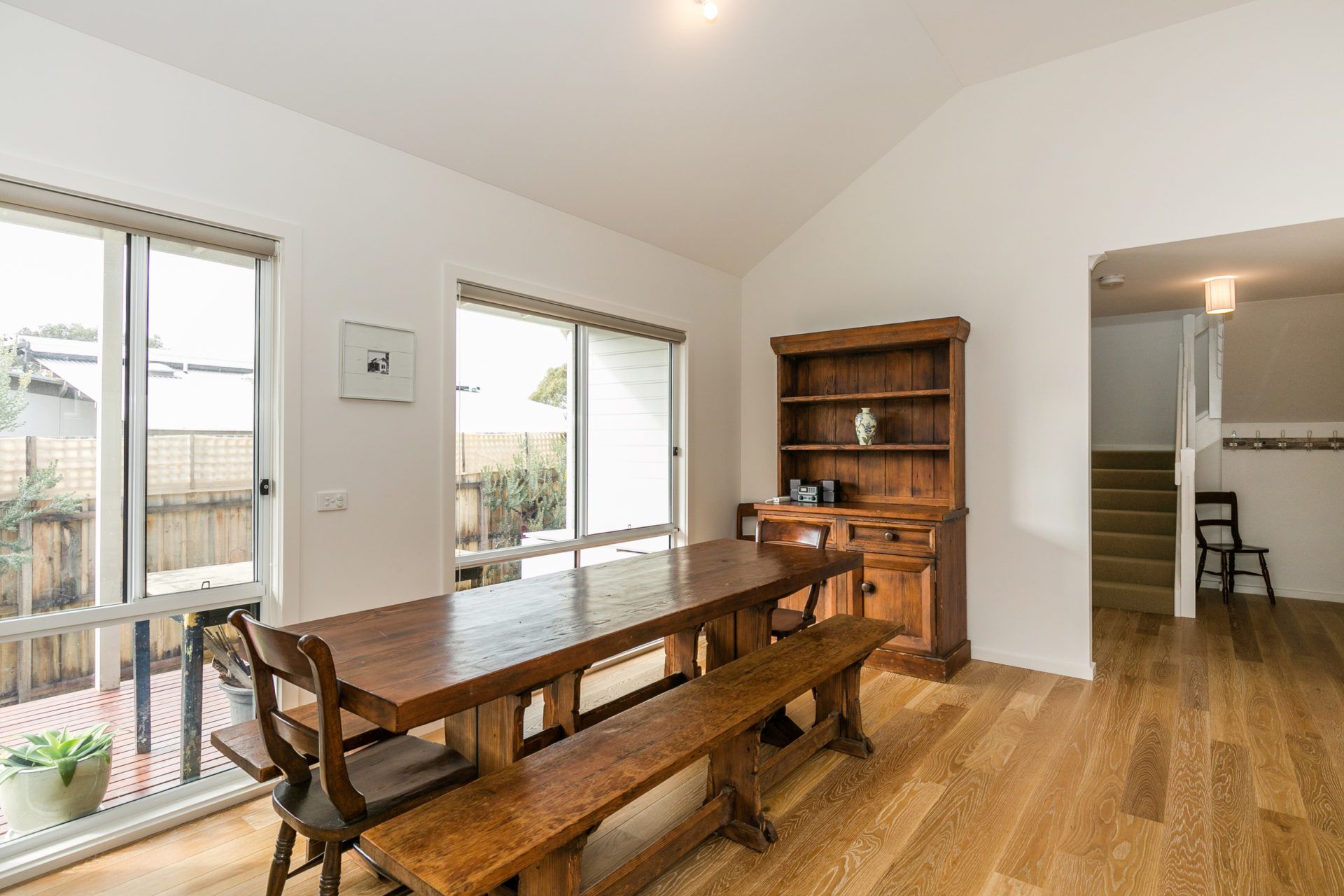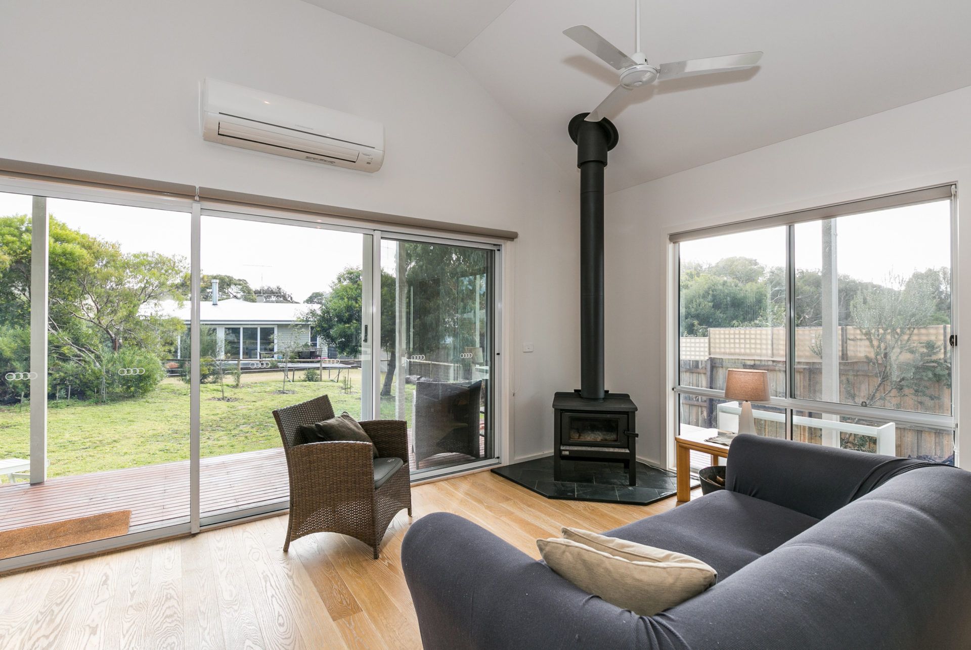 Upon entry you are welcomed by a spacious open plan kitchen/dining and living area with the comforts of a reverse cycle air-con, ceiling fan and wood heater. It is a house for all seasons. You could park the car when you arrive and not use it again until you leave. Enjoy a 2-minute walk to the river, a 5-minute walk to the beach and cafes, and a 10-minute walk to the shops. The rear yard allows enough room for the kids to run around. In winter, whether its family game night or time to relax in front of the log fire, 7 Parker provides guests with both of these options.