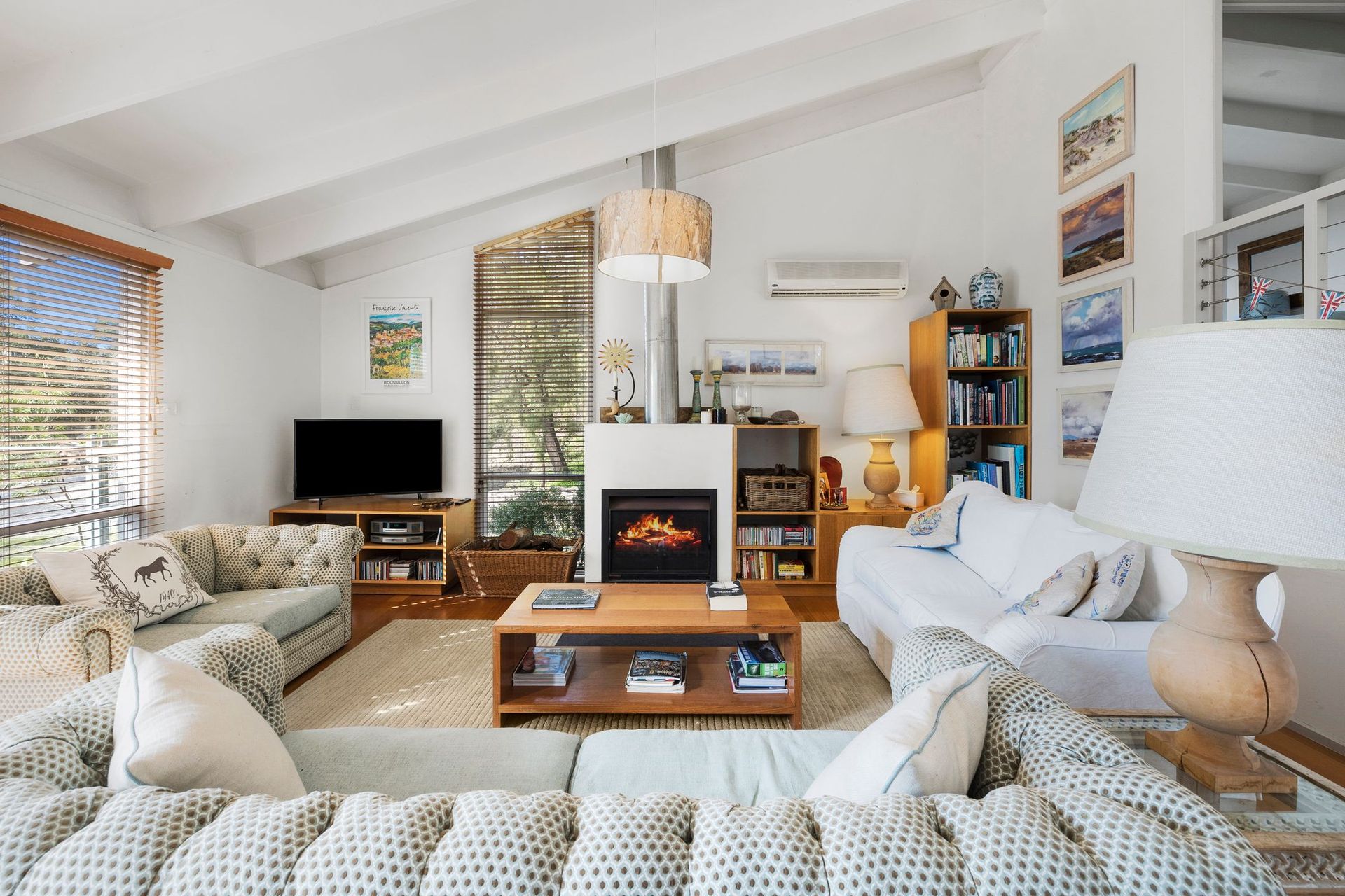 Downstairs via the spiral staircase there is plenty of room for young children or energised teenagers with the hammocks, ping pong and billiard table, not forgetting 2 TVs.The stylish open plan lounge and dining area provides a perfect space to relax in front of the open fire, and facilities are good if you like to cook too! Don't forget the outdoor shower there's nothing nicer or the air conditioner.
