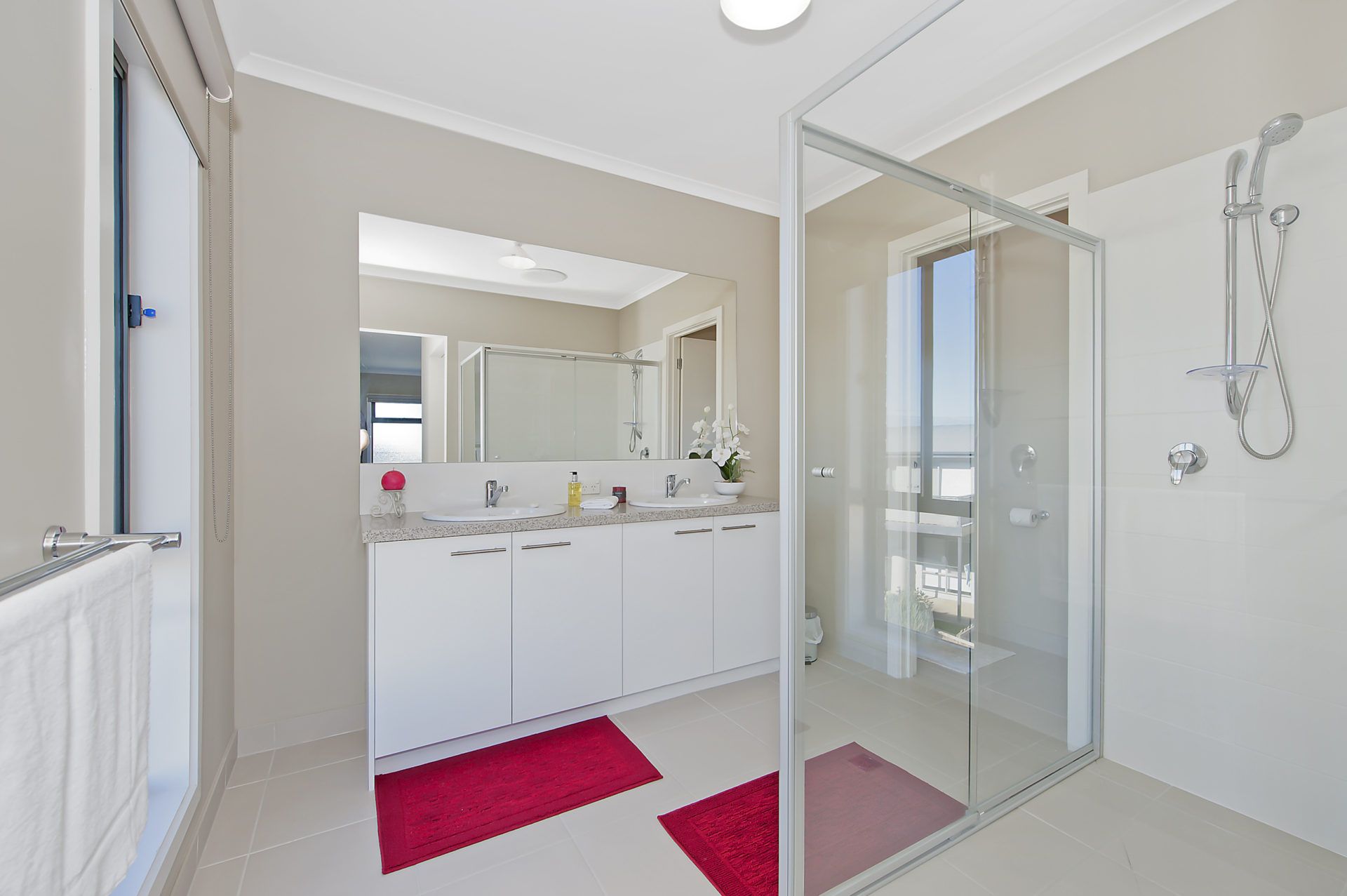 The master bedroom also located on the 1st Level consists of a queen size bed and a large ensuite with shower, toilet, large vanity with dual basins, large walk-in robe.