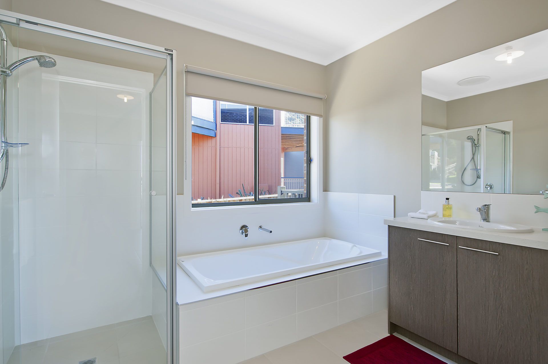 There are also three bedrooms situated on the ground Level. The main bathroom has a separate shower, separate bath and toilet. The laundry consists of a top-loading washing machine, iron, ironing board, vacuum cleaner and indoor/outdoor clothes airier. The ground level has reverse cycle heating and cooling.