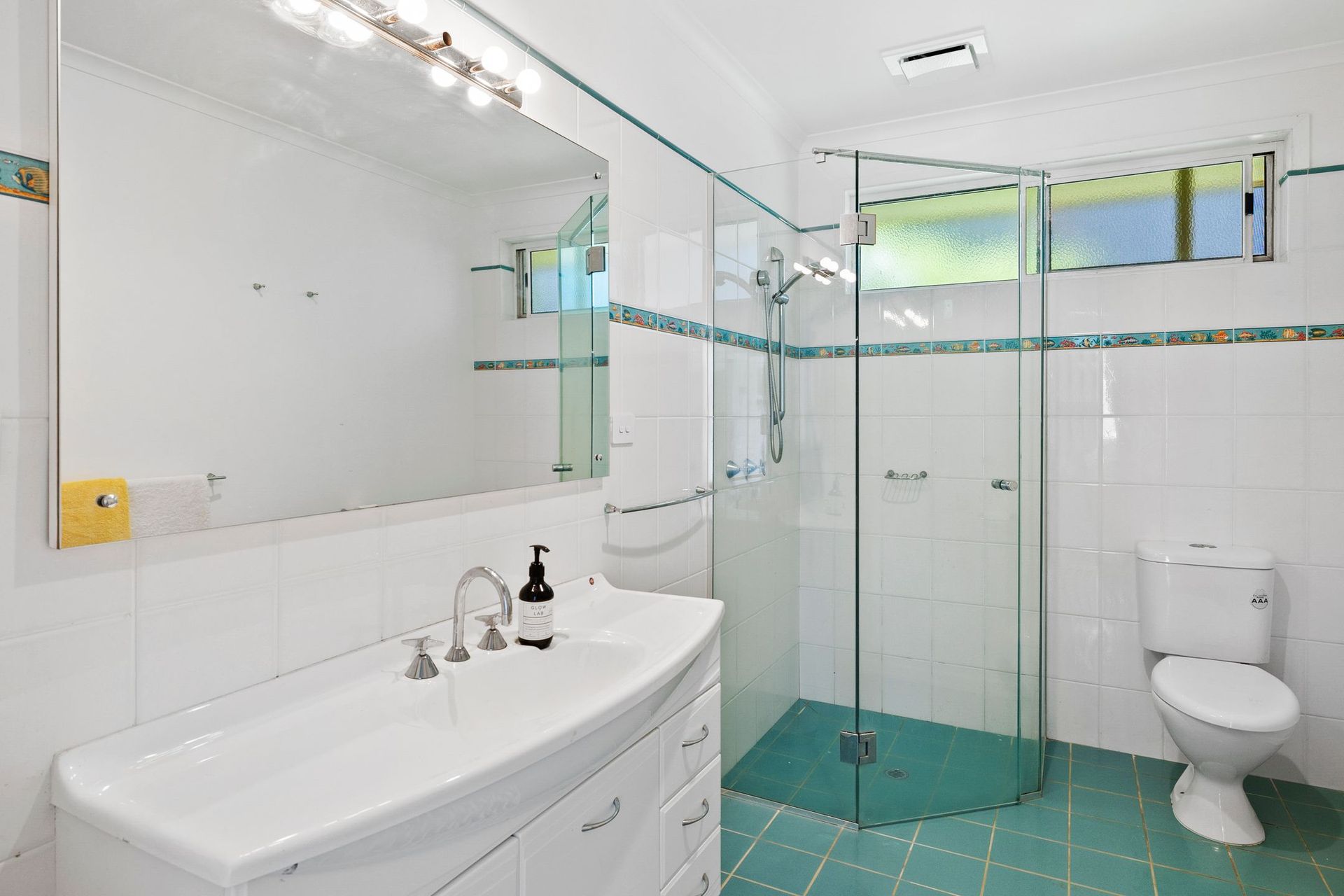 Bedroom 1: King bed, balcony access, built-in robe, and ensuite with shower and toilet