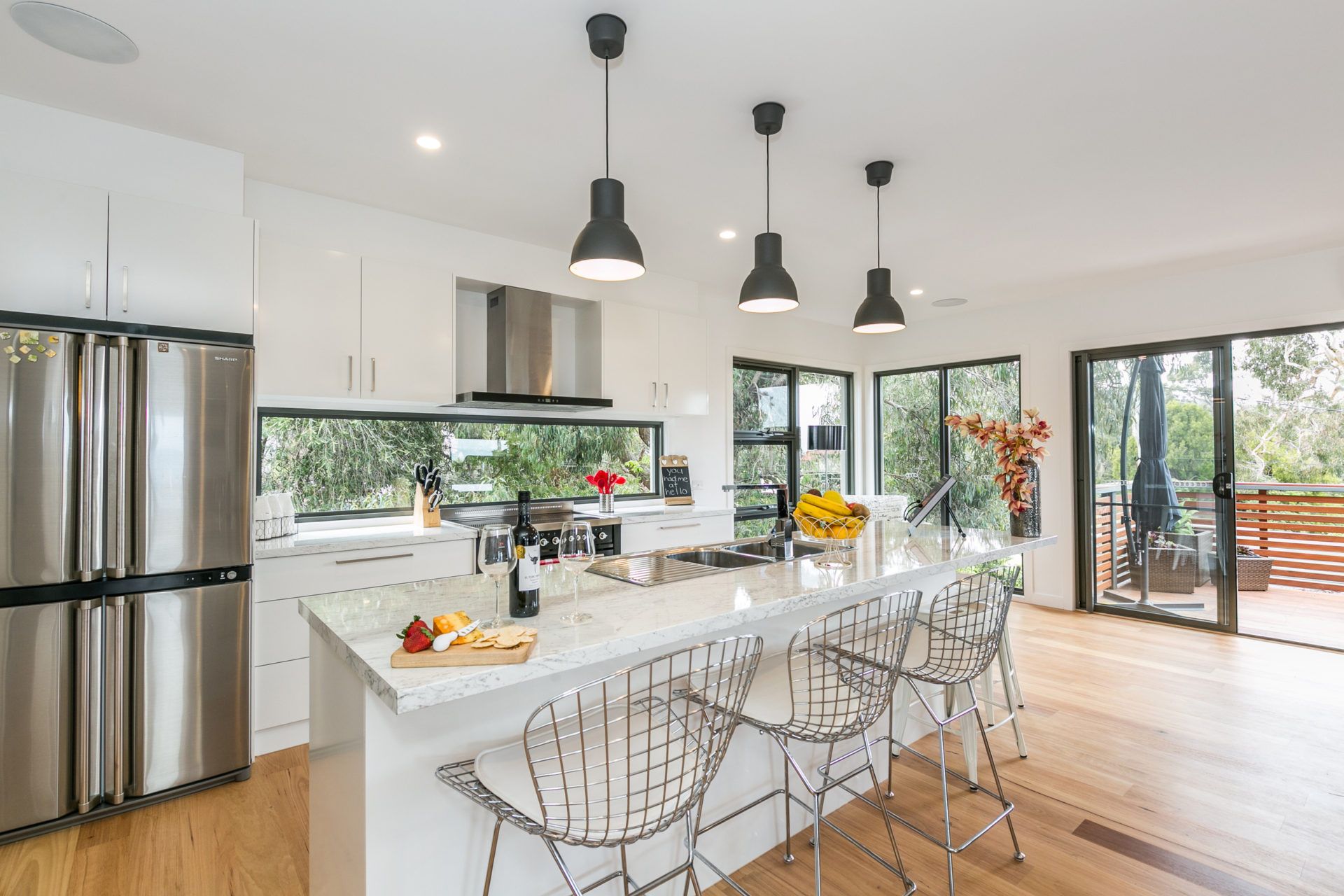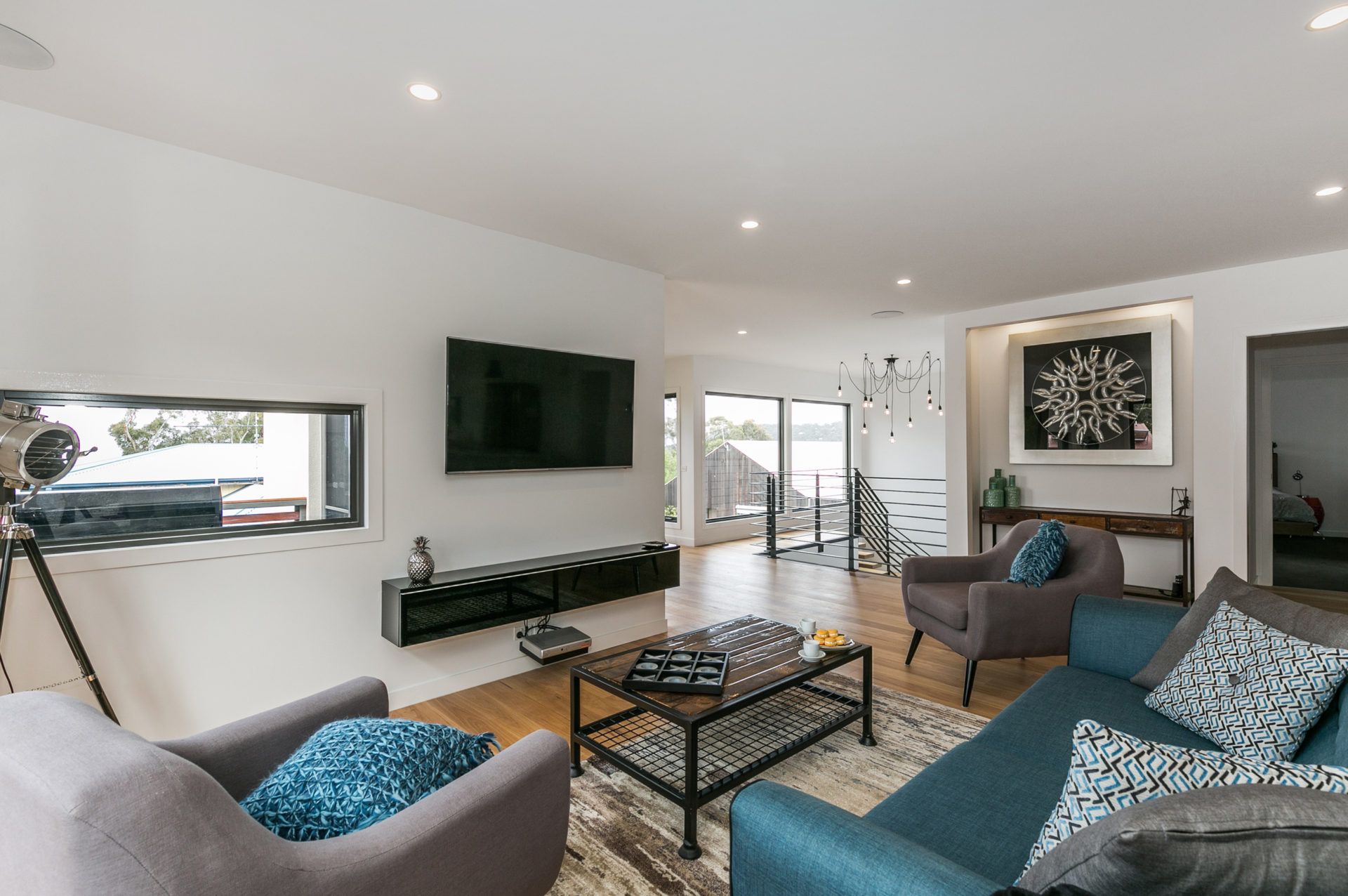 Set across two levels and joined by the most striking free form steel staircase, the property boast all sorts of holiday inspired features.