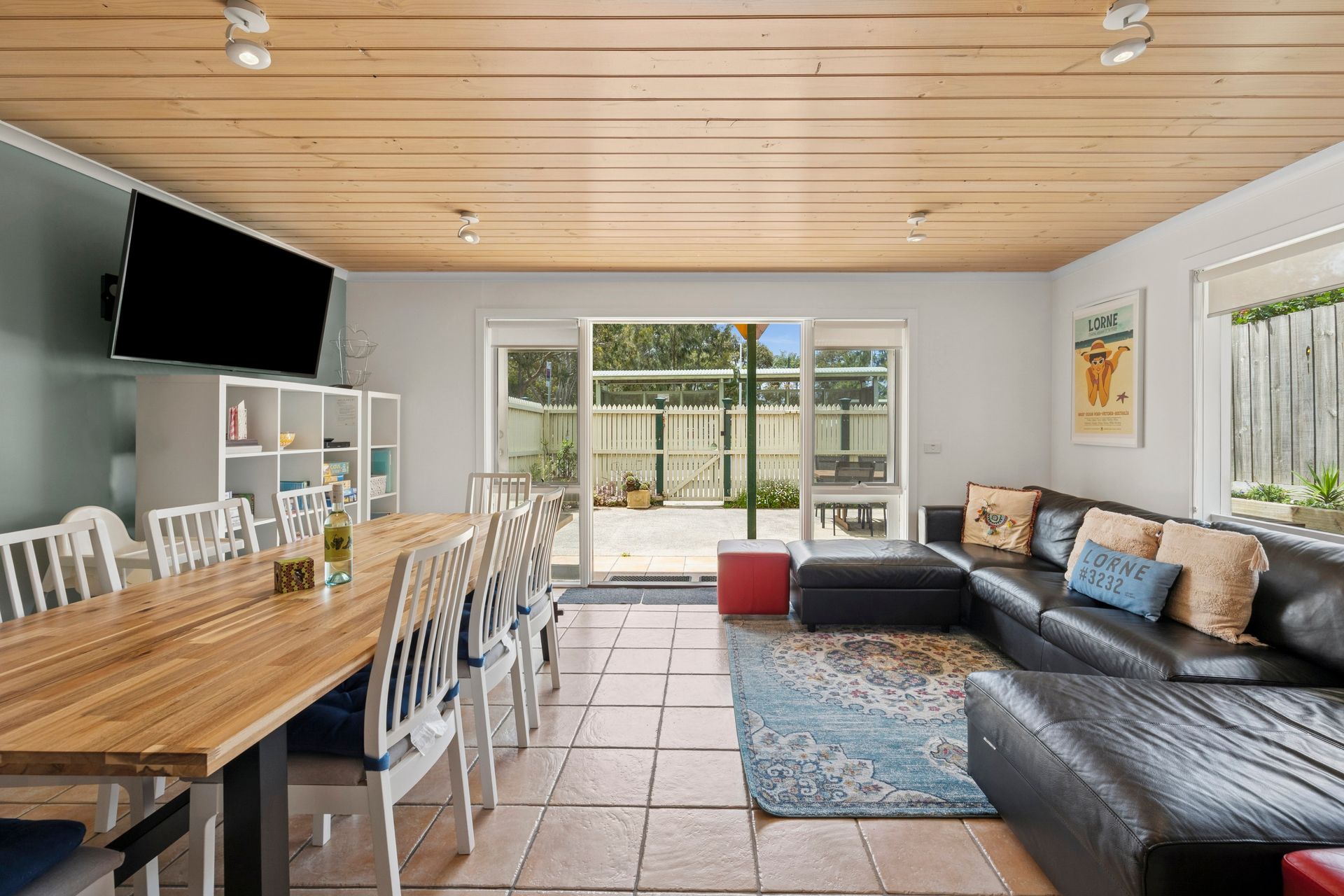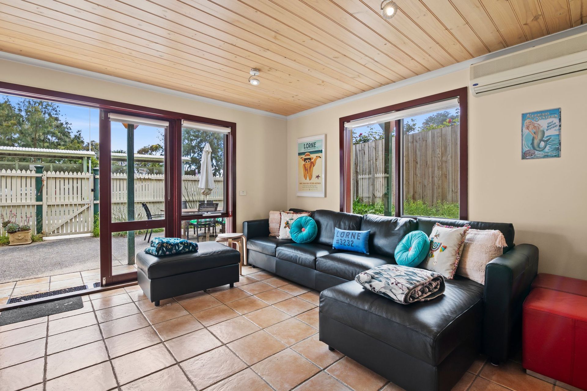 Step inside and you'll be greeted by a thoughtfully furnished space. The living room offers a cozy retreat with entertainment options that you can enjoy with your family or loved ones, including a curated selection of DVDs, books and board games, television and Bluetooth speakers. The fully-equipped kitchen with breakfast bar caters to your culinary needs, featuring modern appliances including a Nespresso coffee machine, and all the essentials for a delightful stay. The bedrooms are elegantly appointed, providing a comfortable and restful retreat. Venture outside, and you'll find a private courtyard and patio perfect for soaking up the fresh air. The fully fenced yard ensures privacy and security, with an electric BBQ for al fresco dining. Relish the proximity to the heart of Lorne; in this central location, you can leave the car in its dedicated undercover parking spot and stroll to and from the beach and shops, or leave the car at home and take a bus to the conveniently located bus stop right outside.