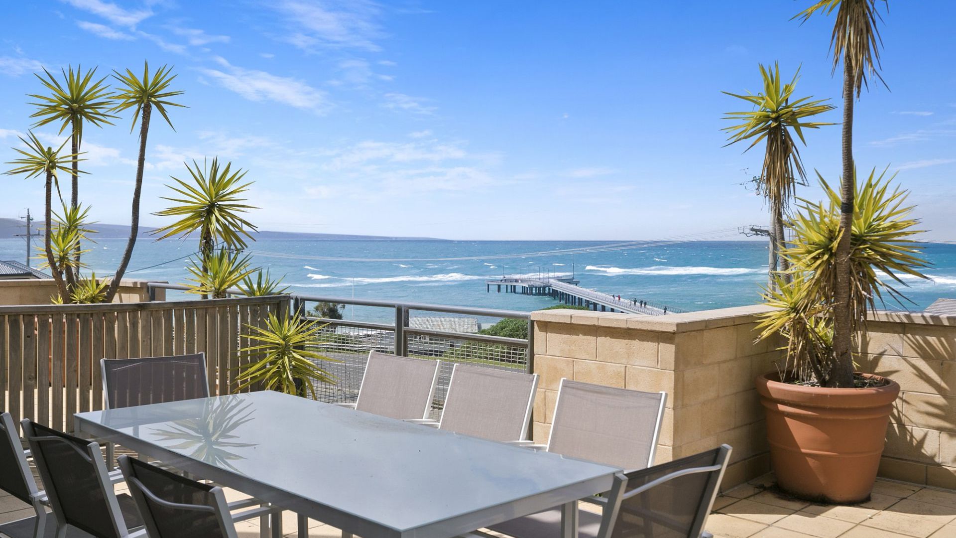 A lovely and spacious 3 bedroom apartment, Apartment 11 comes with ocean views overlooking the Pier and beyond. Take full advantage of the magnificent views from the living room, balcony or even better, wake up on a lazy Sunday morning with brekkie in bed and take in the views from the master bedroom.