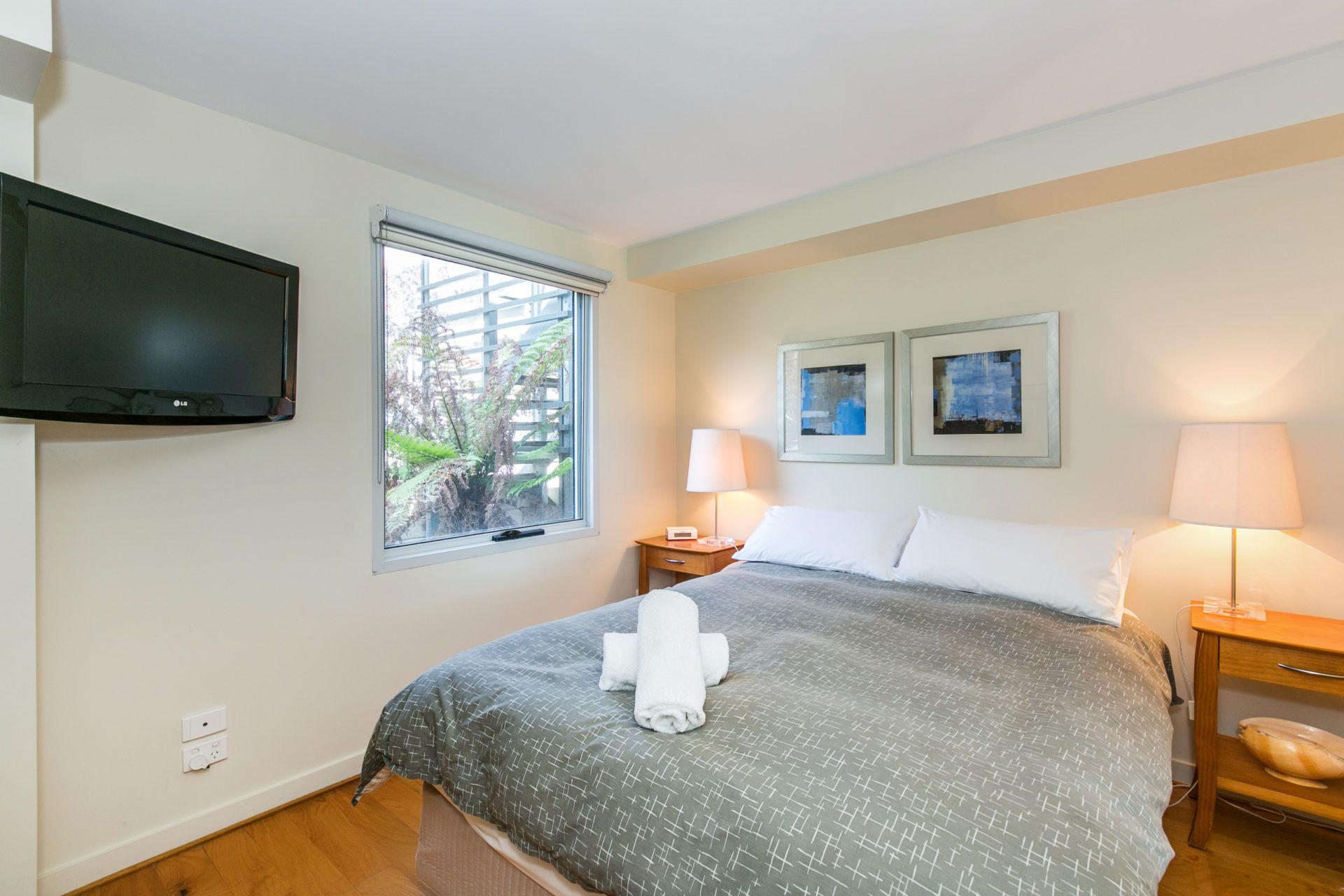 It is a comfortable air conditioned apartment that has open plan living, fully equipped kitchen, 2 comfortable bedrooms and 2 bathrooms (en suite has spa). Off street undercover parking is provided. There is an easy walk to Lornes shopping centre, cinema and ocean beach or dine out at the seafood restaurant close by at the Lorne pier.