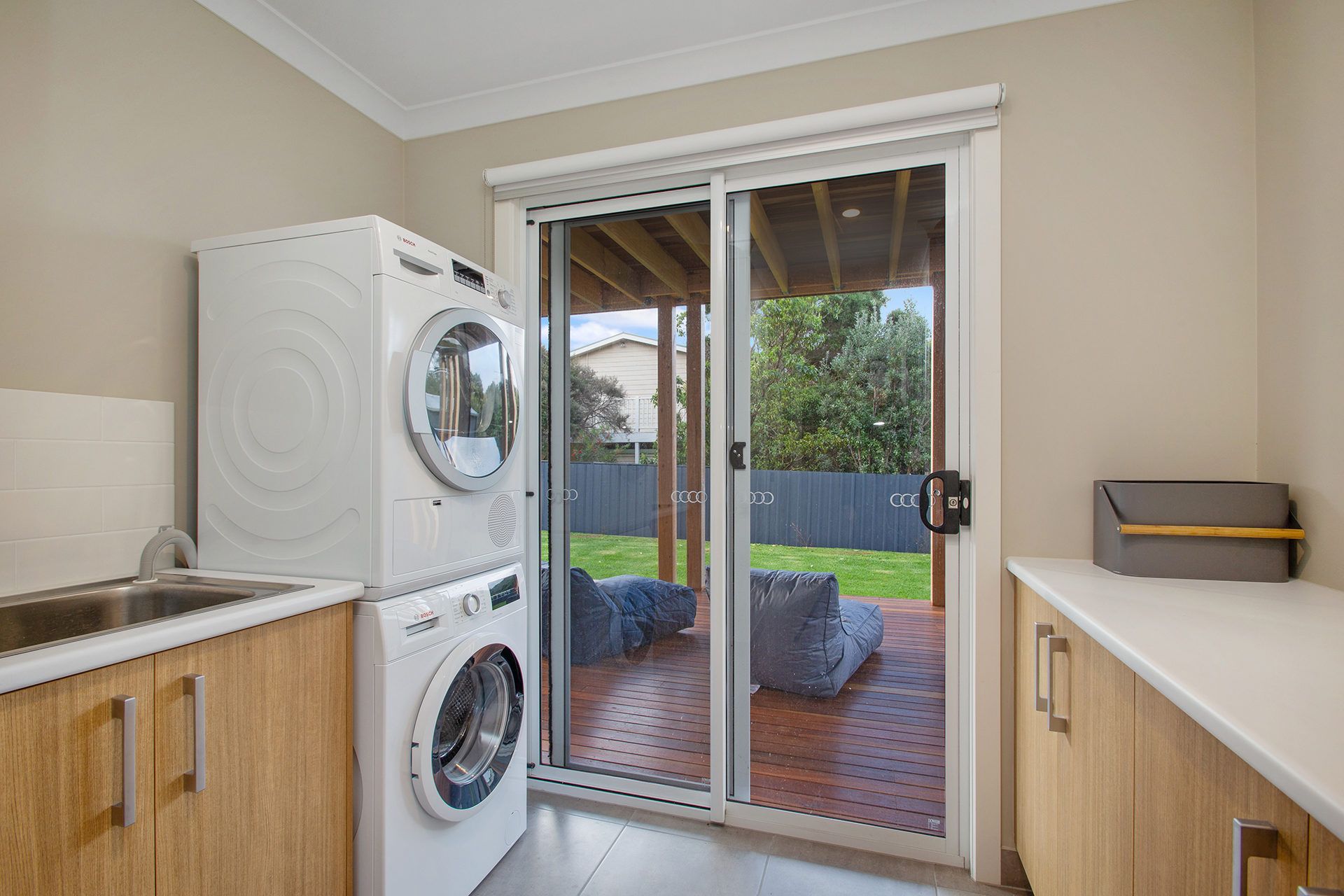 The large modern laundry is also located on the ground level and provides all the essentials (front loader washing machine, dryer, iron, ironing board and vacuum cleaner), including indoor and outdoor clotheslines.