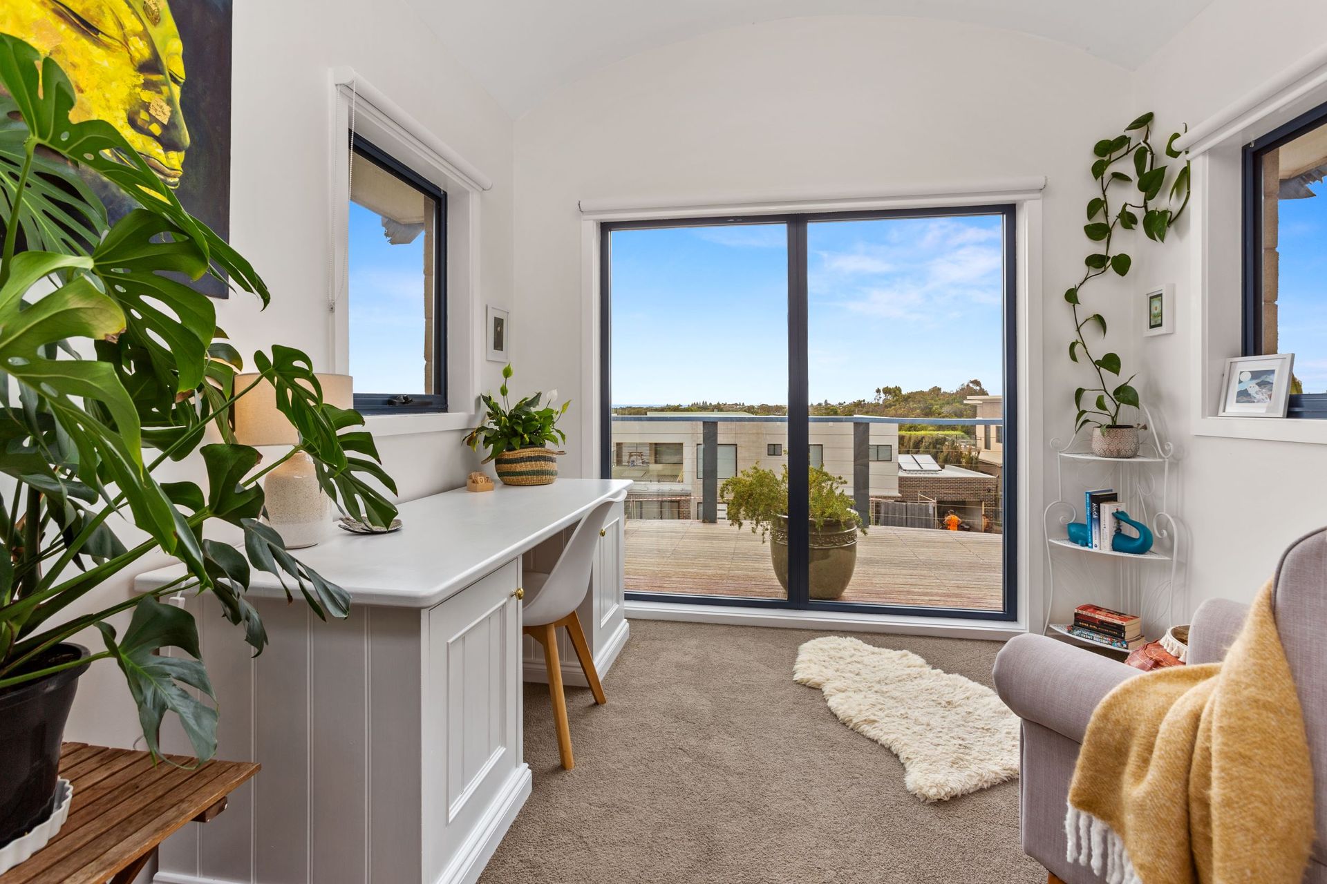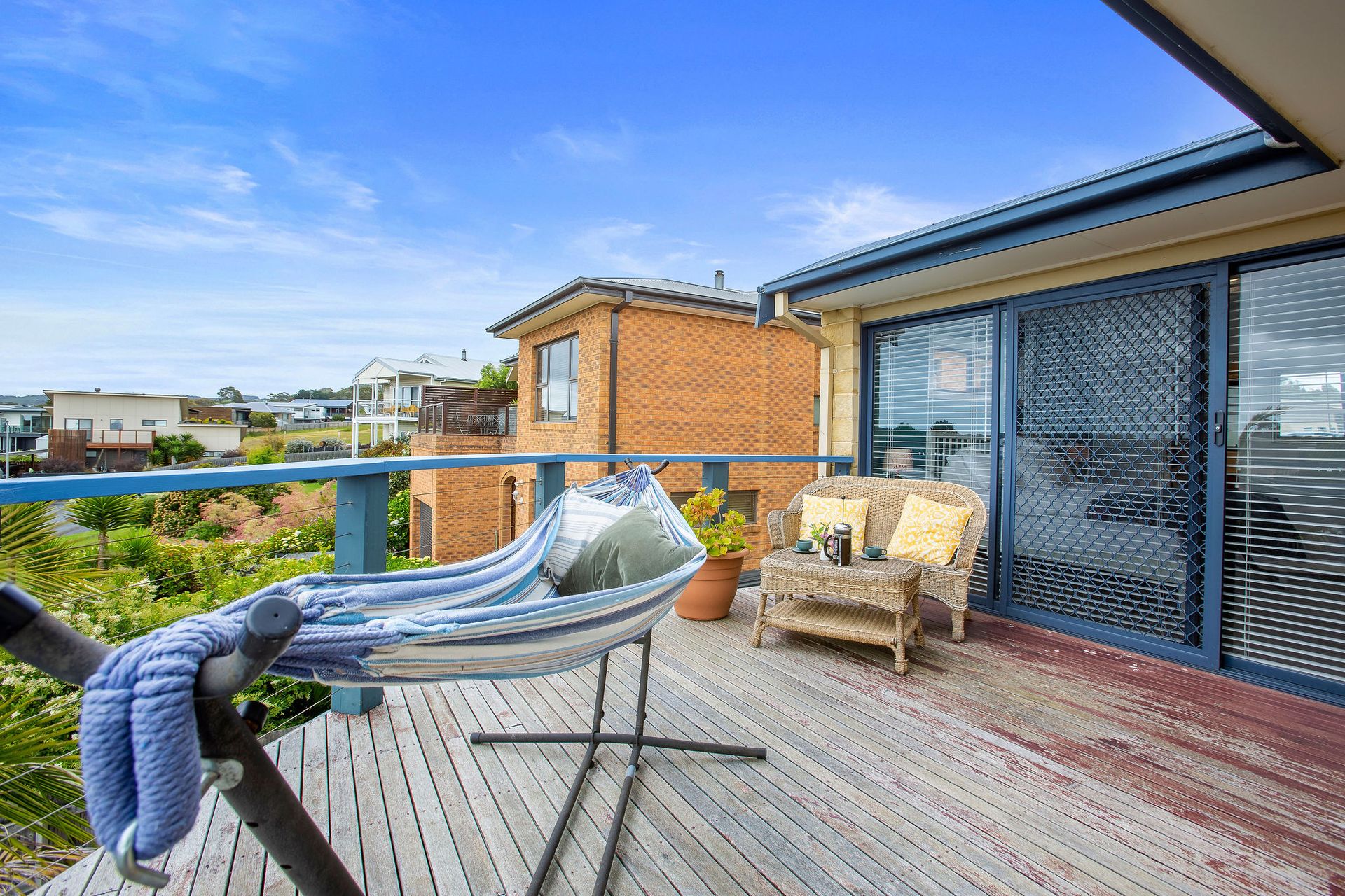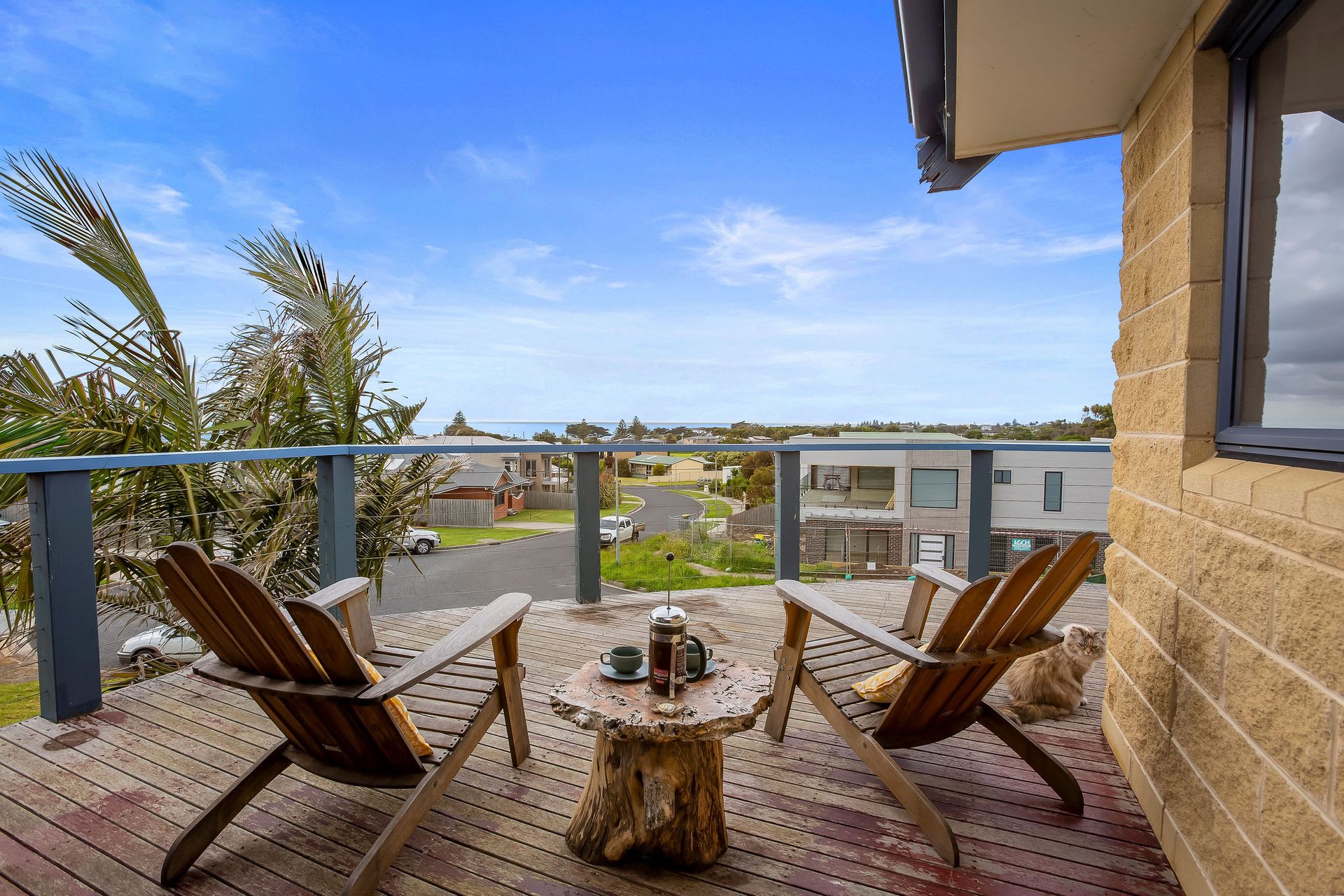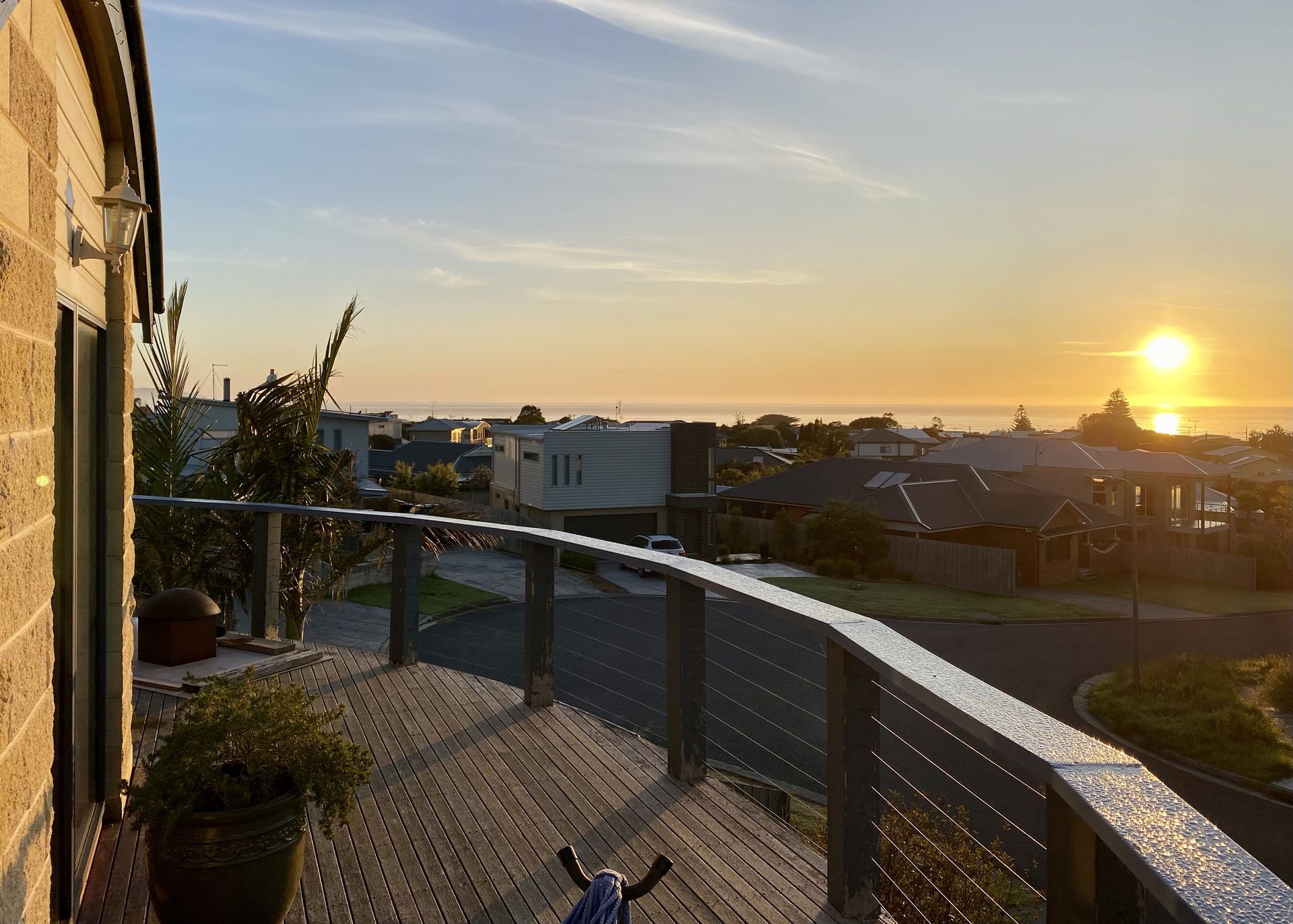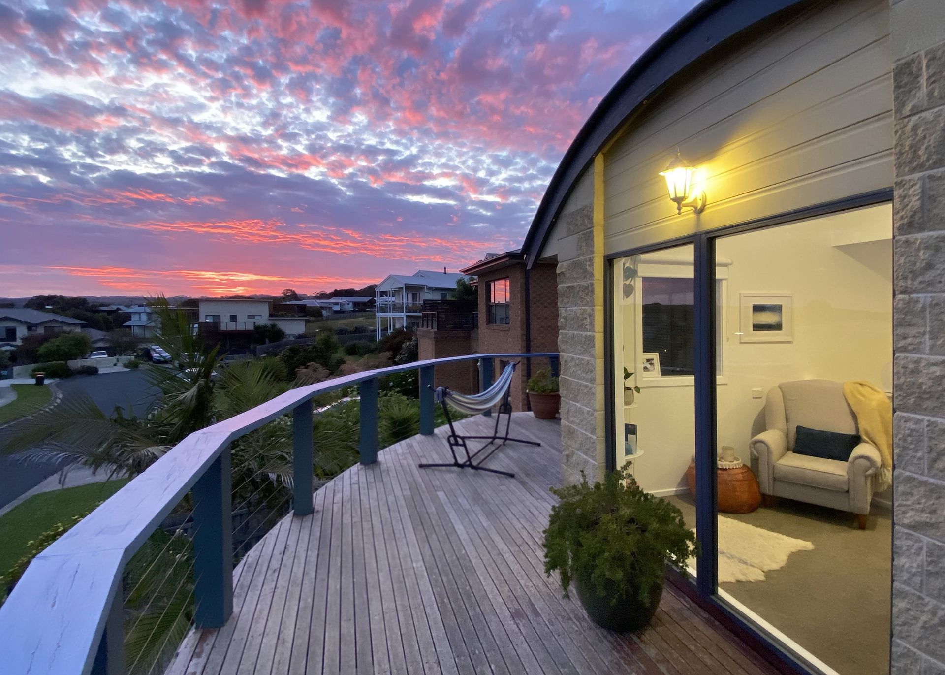 There's also an office nook upstairs to work from home while looking out at 180 degree views from the Apollo Bay Harbour to Cape Patton. Outside offers an outdoor patio with table and chairs, small garden for pets, and front and rear balconies, where you can BBQ, relax in the hammock and watch the sunrise or set as you bond with your family.