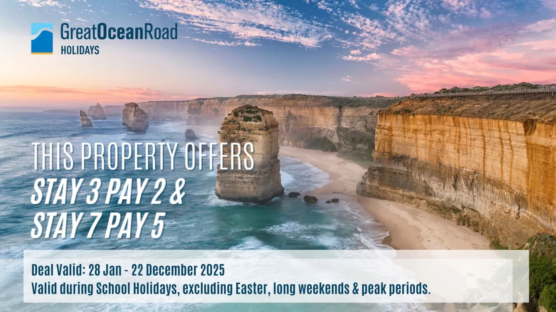 This property offers STAY 3 PAY 2 & STAY 7 PAY 5 deals from 30 January to 22 December 2025. Valid during School Holidays excluding Easter, long weekends & peak periods.