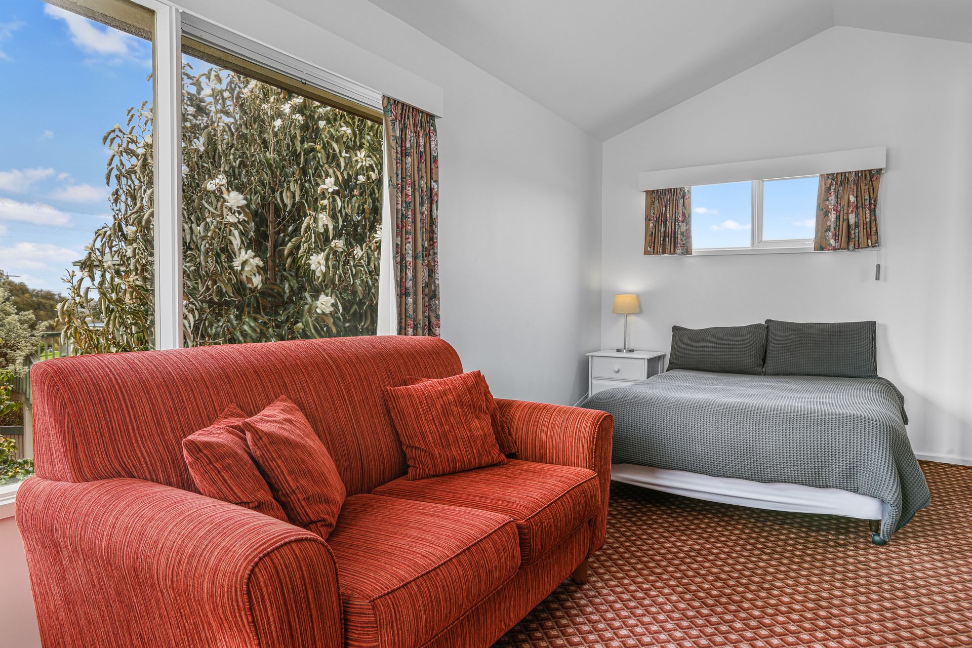 - Large open lounge/dining/kitchen: 1 x 3-seater, 1x 2-seater, 2 arm chairs, large TV with DVD player, R/C A/C, coffee table, dining for 6 (with