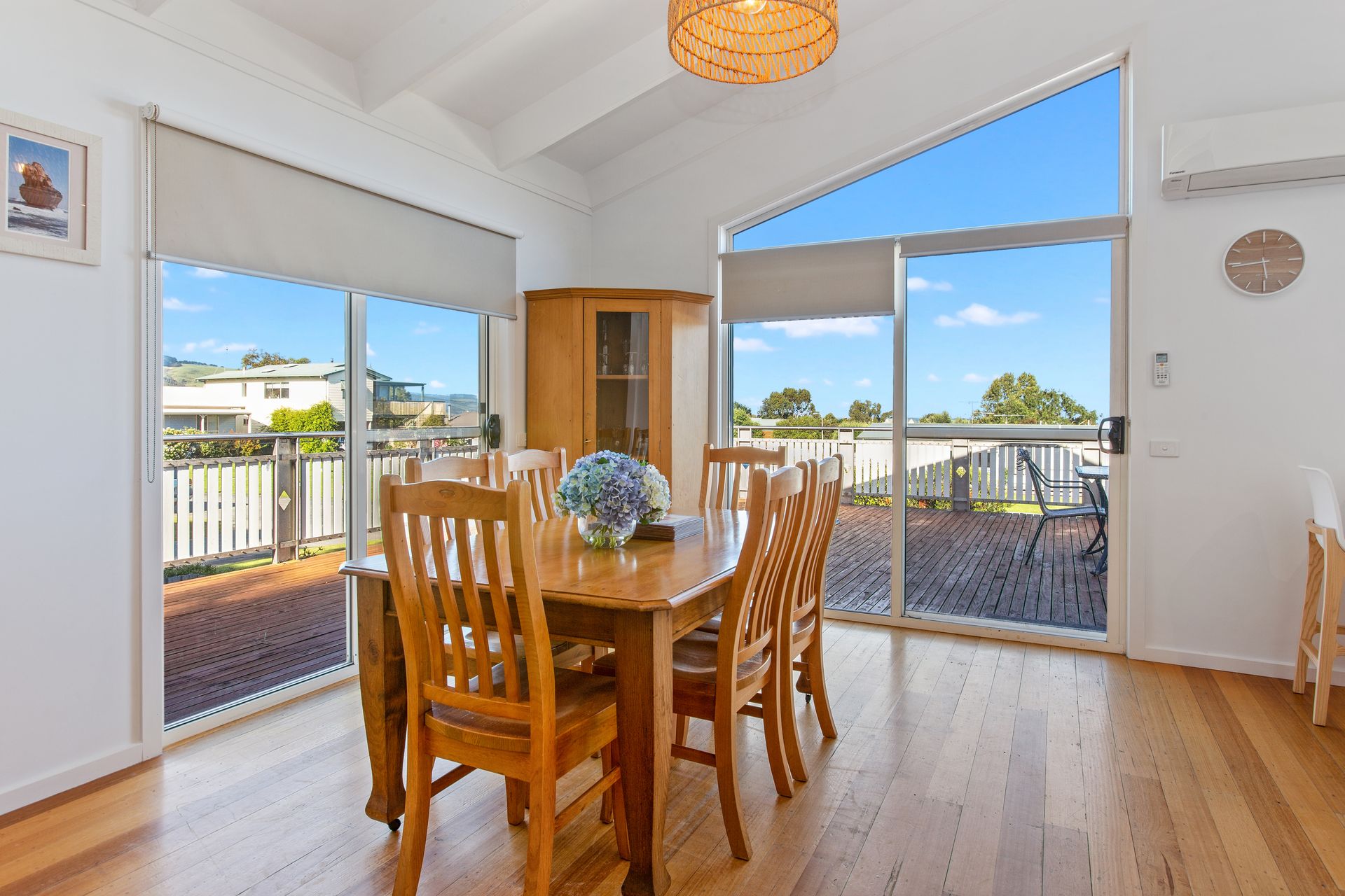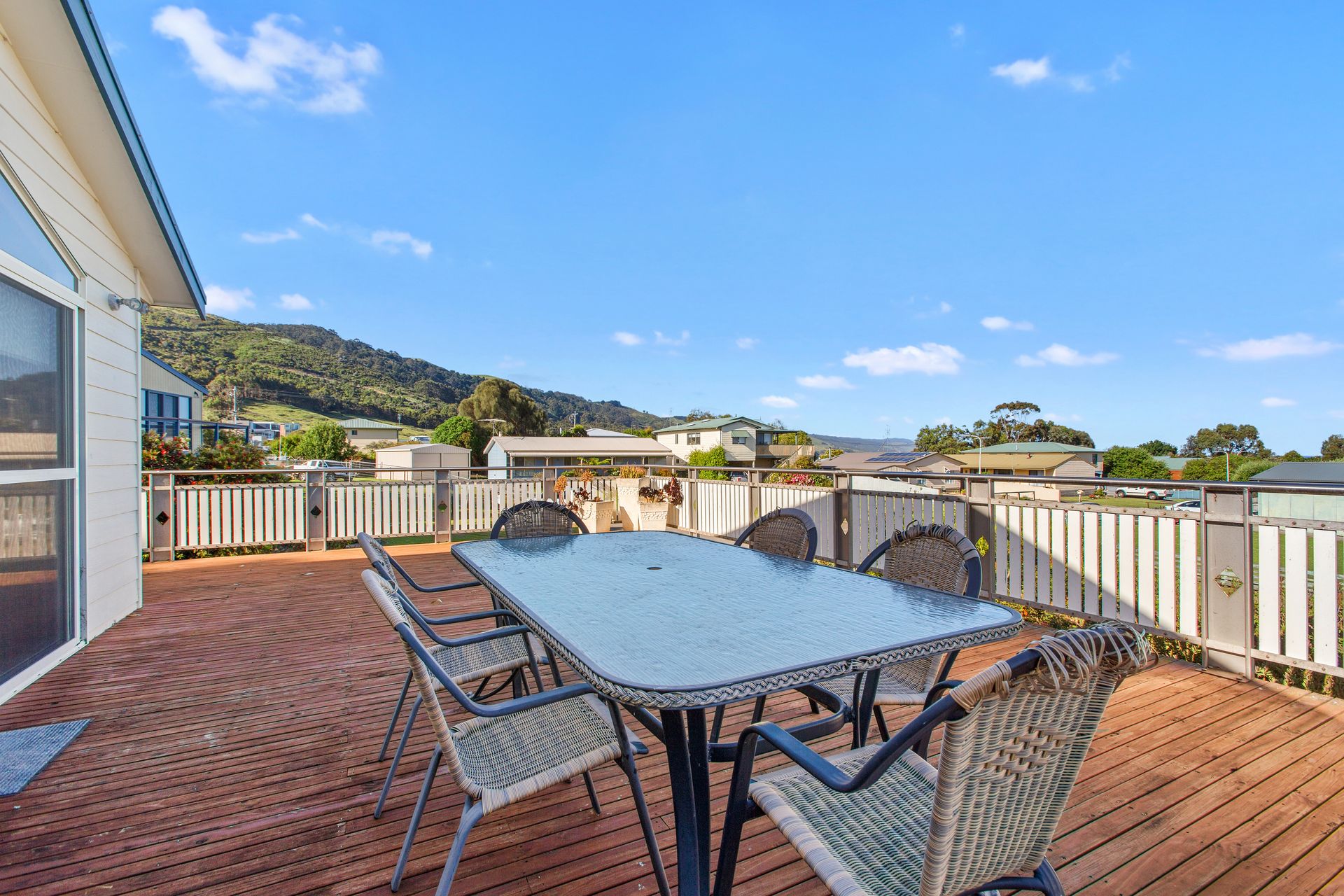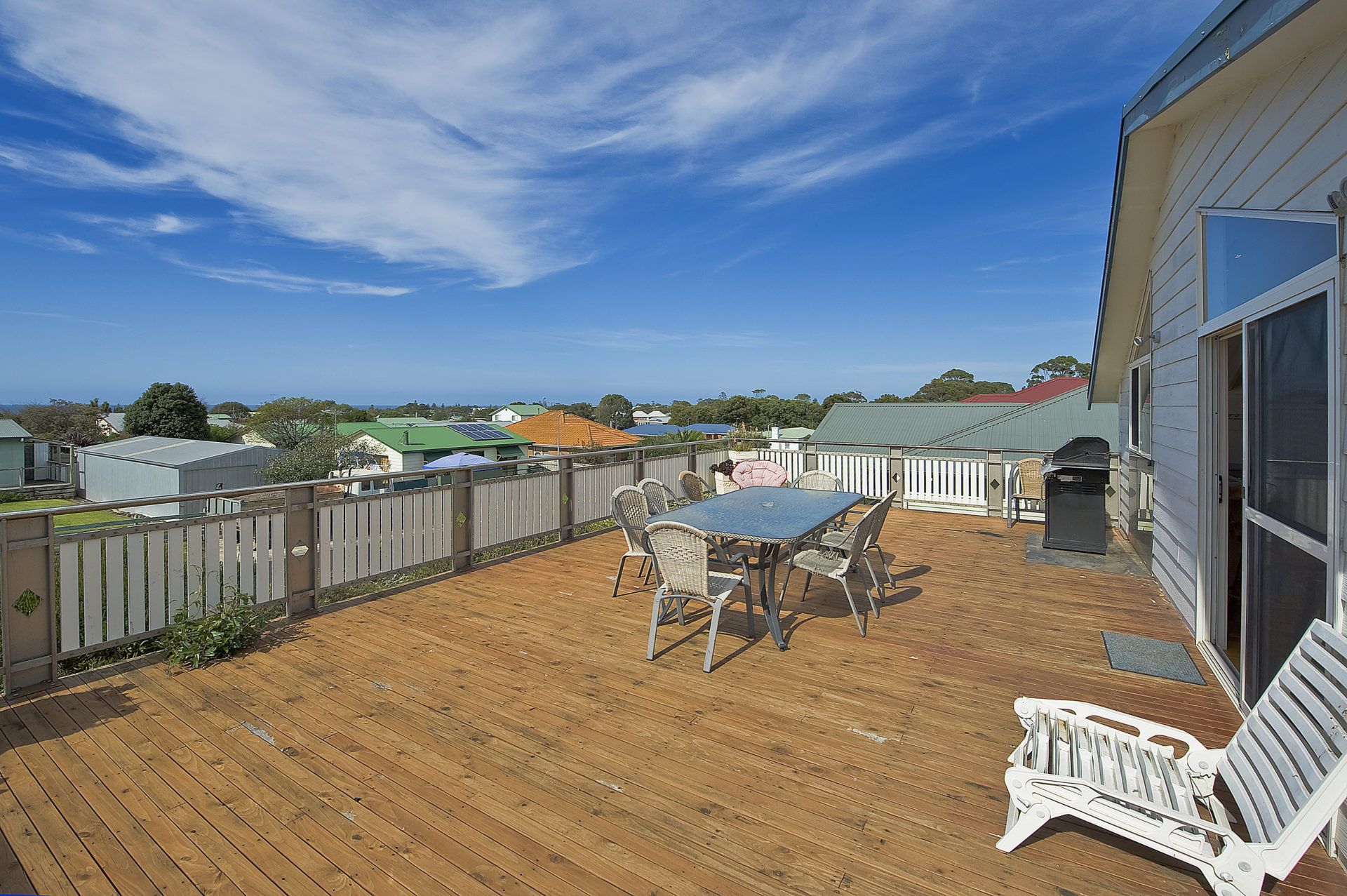 Massive wooden decks ideal for the entertainer, with BBQ and outdoor furniture.Featuring open plan kitchen, living and dining areas and with a 2nd lounge area downstairs,this property is ideal for 2 families. Located in quiet Murray Square only a few minutes walk to the shops and beach.