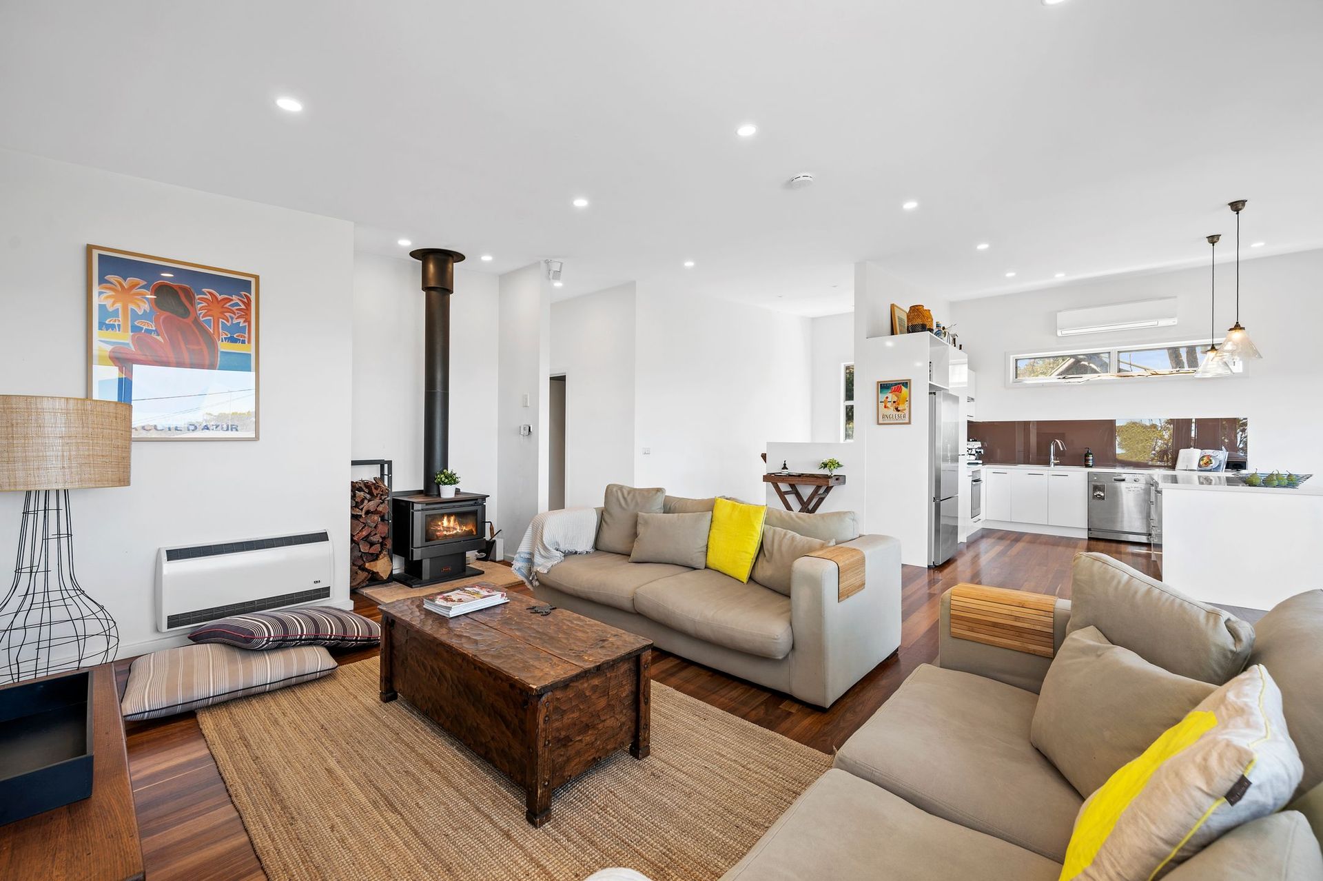 The upper open plan living area is a highlight of the home and features a modern well-appointed kitchen - an entertainer’s delight! - and a generously sized living area, all flowing out to a large sunny deck with a BBQ and views to Point Roadknight.