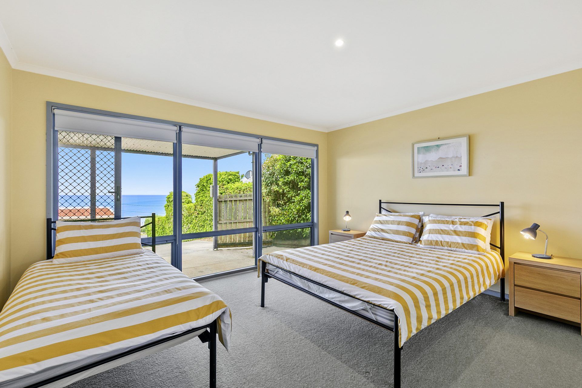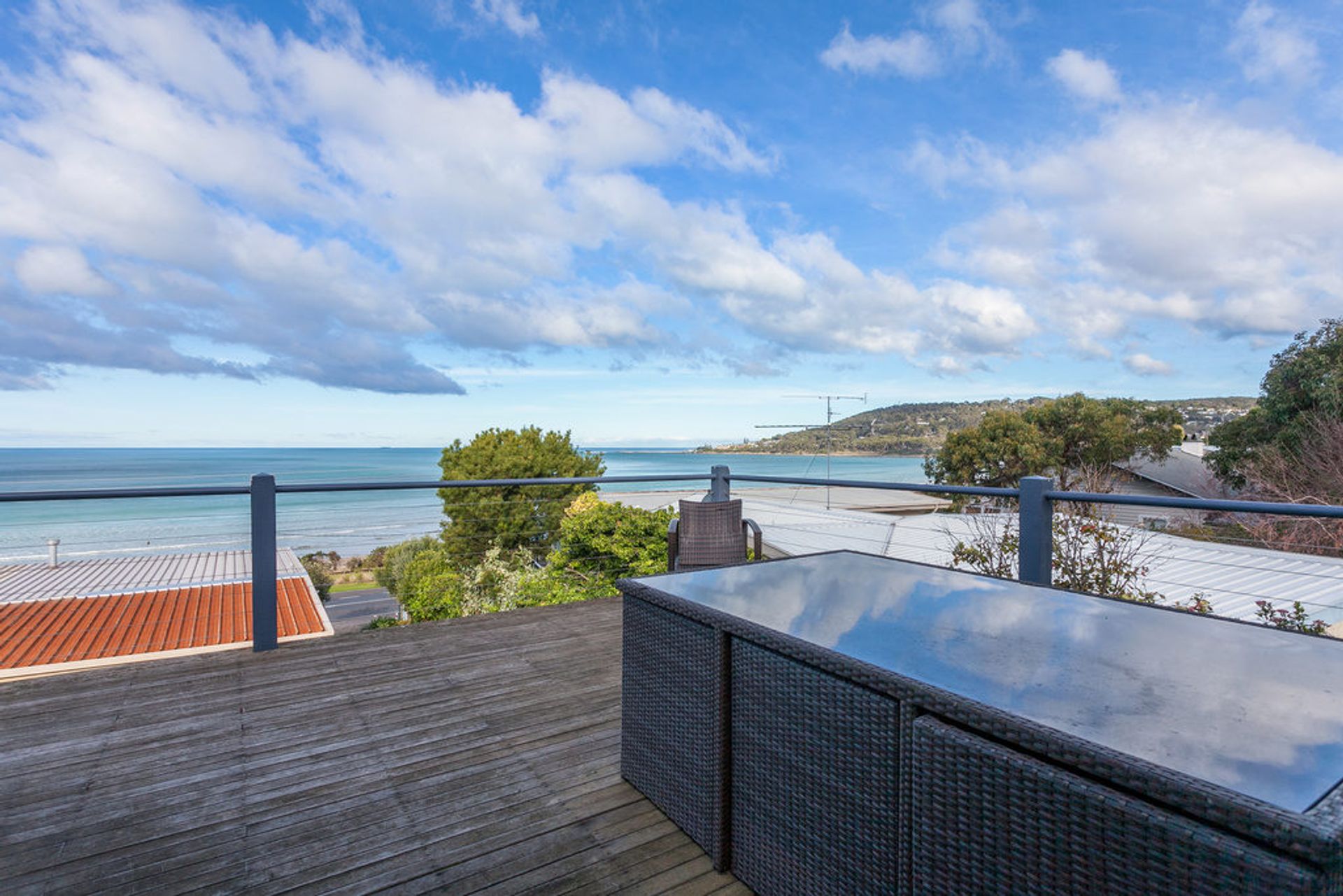 Breathtakingly spacious four bedroom, 2 bathroom, double storey property with outstanding panoramic sea views from Lorne Pier to Airey's Inlet Lighthouse. Two large decks sunny and sheltered, featuring BBQ and outdoor furniture. Two large entertaining areas with quality furniture and fittings and soccer ball games table. Stepping across the road to the beach is the final compliment to this wonderful holiday home.
