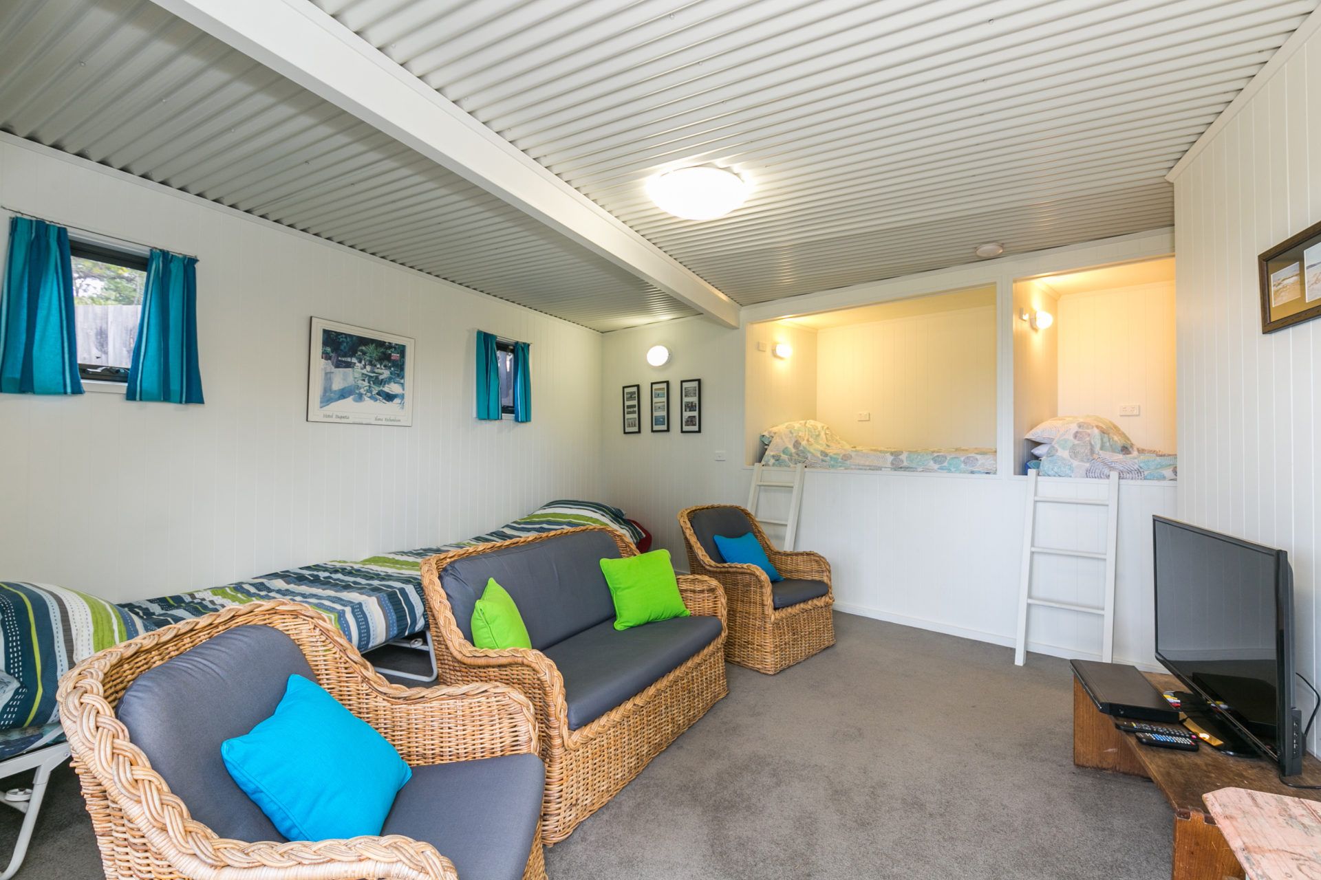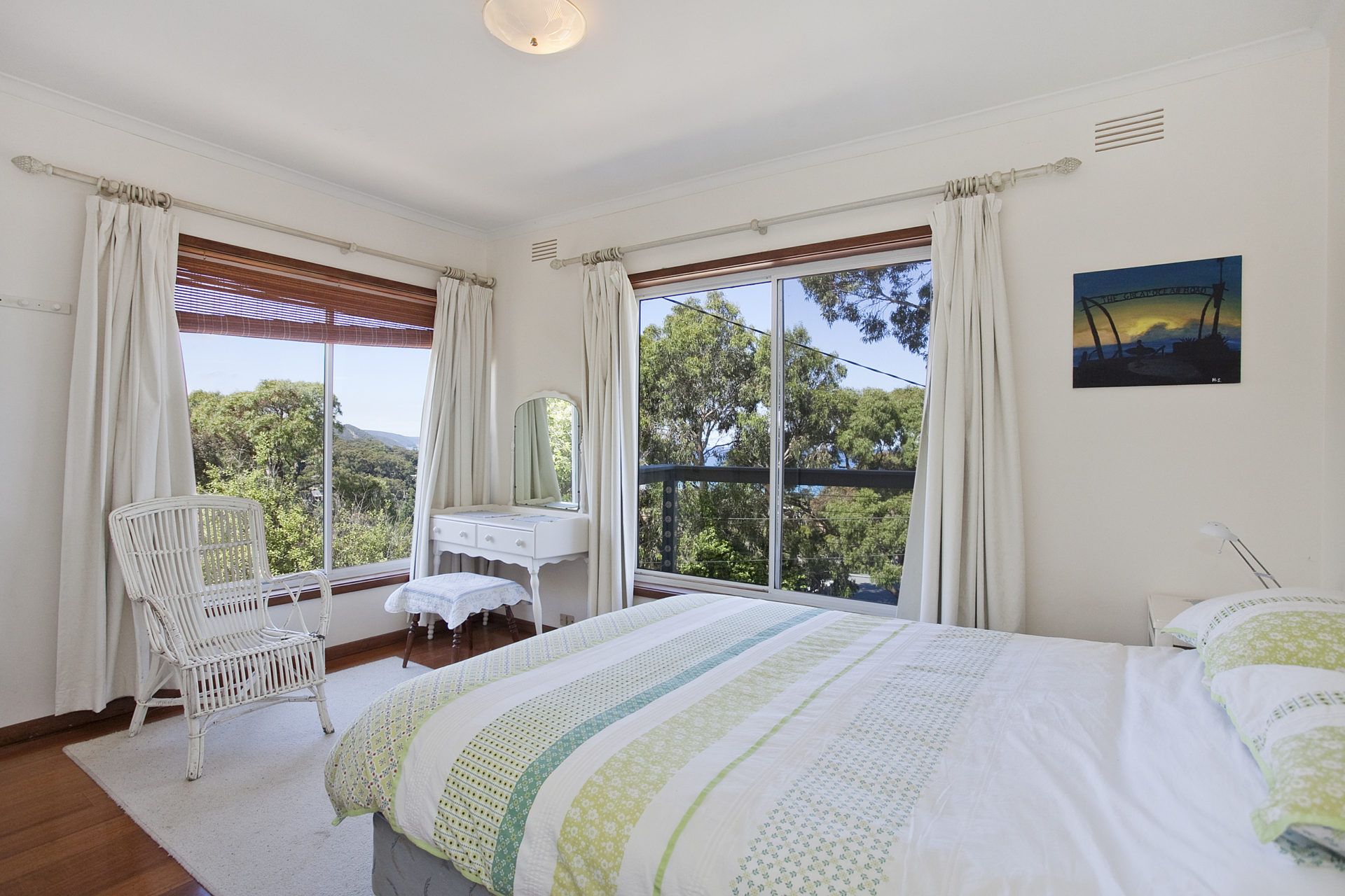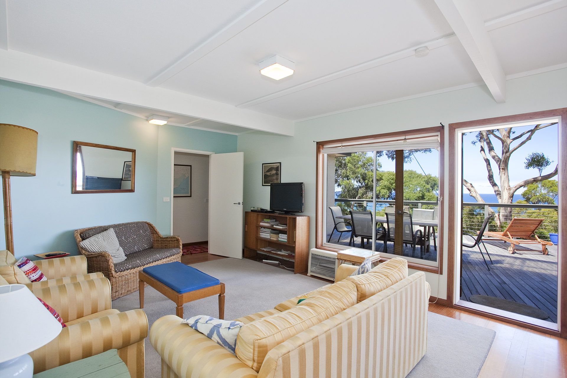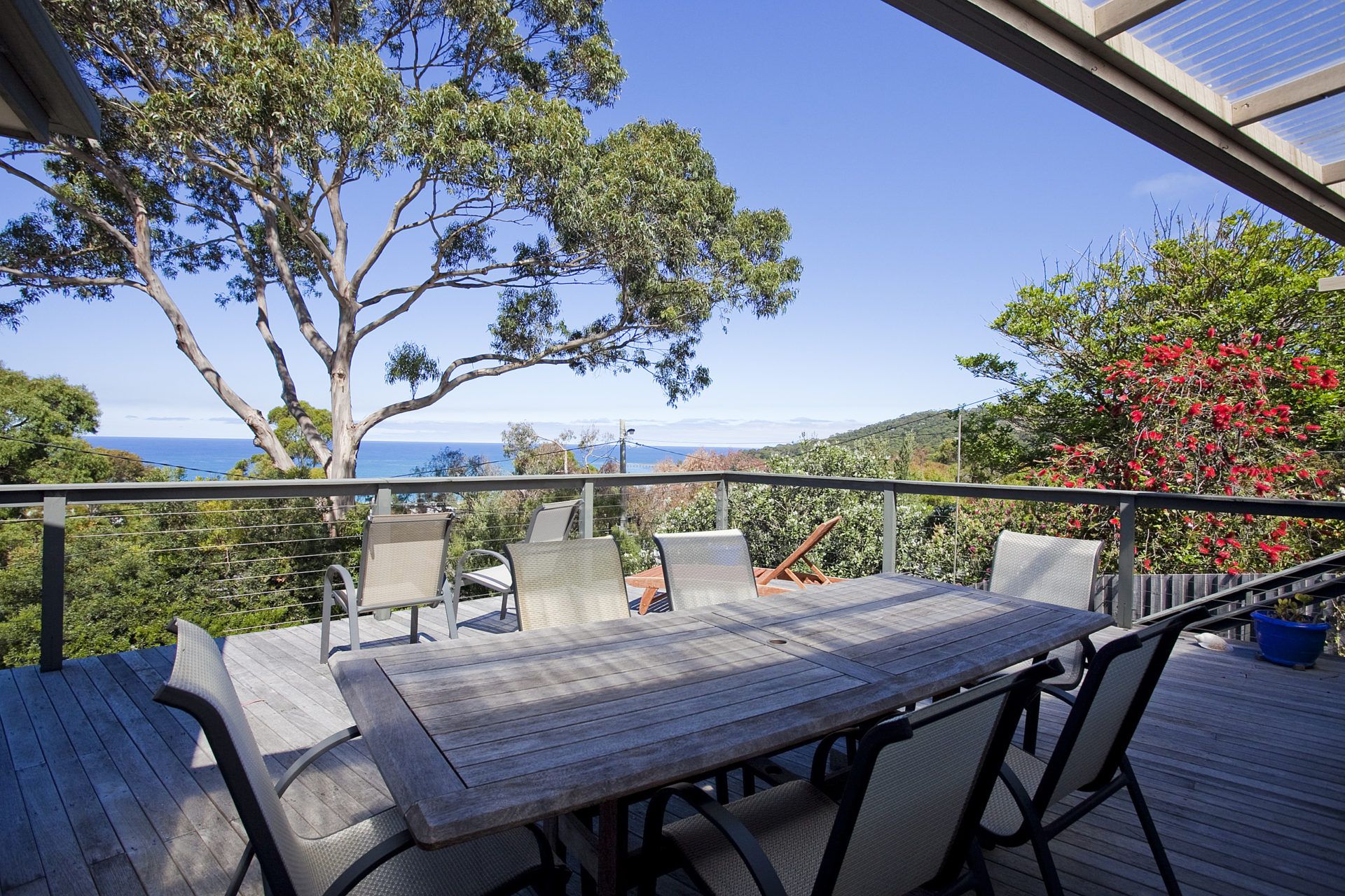 Recently renovated to include a fantastic externally accessed downstairs living/bedroom area, complete with two galley style single beds and en suite bathroom, this home provides families the opportunity to find their own space. With a large deck area, stunning views through to Airey's Inlet, walking distance to town and beach Ben-My-Chree is your choice for a comfortable, affordable family holiday.