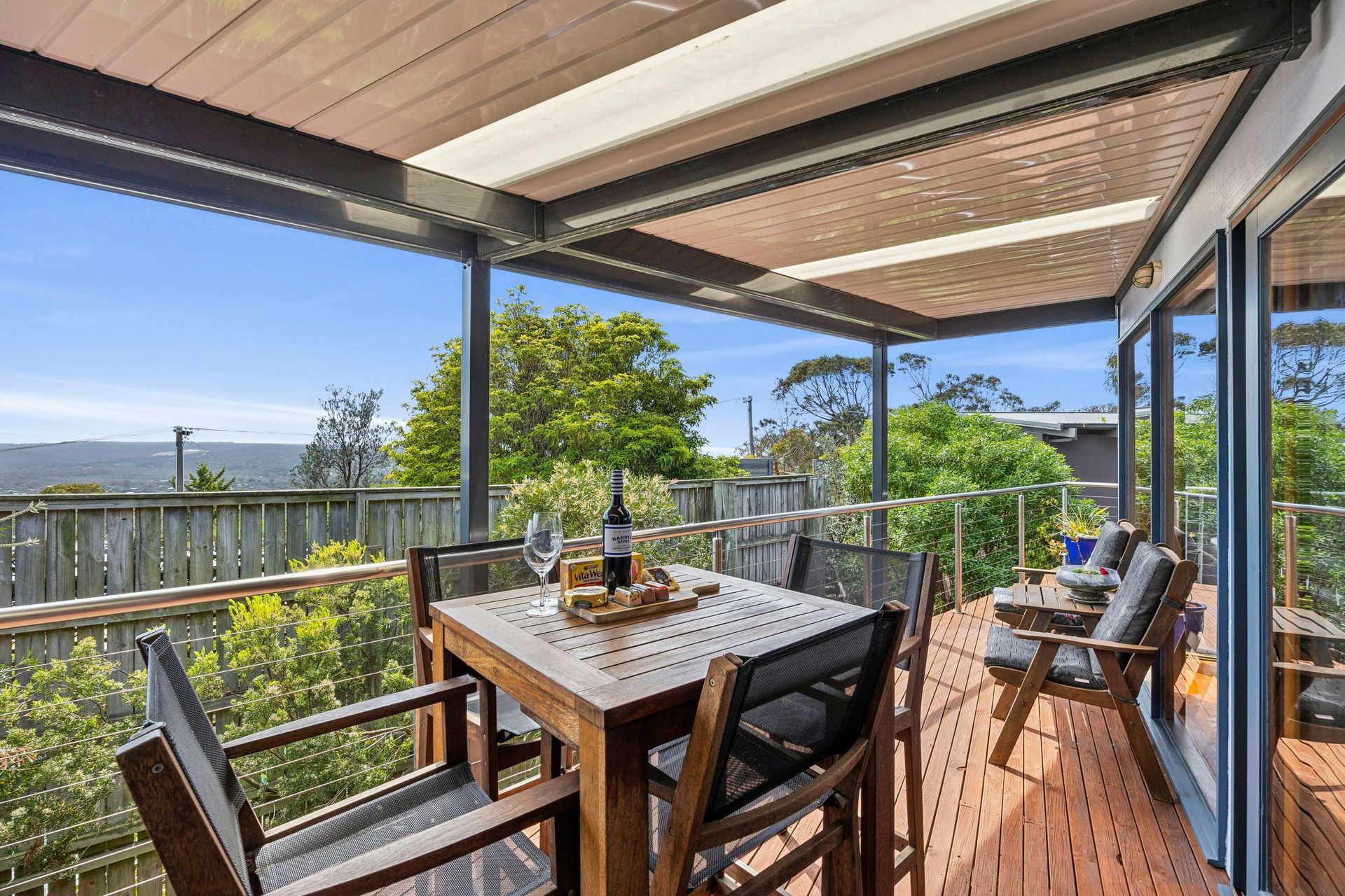 Fantastic coastal views up to Pt Addis from the back deck as well as through the hinterland area.