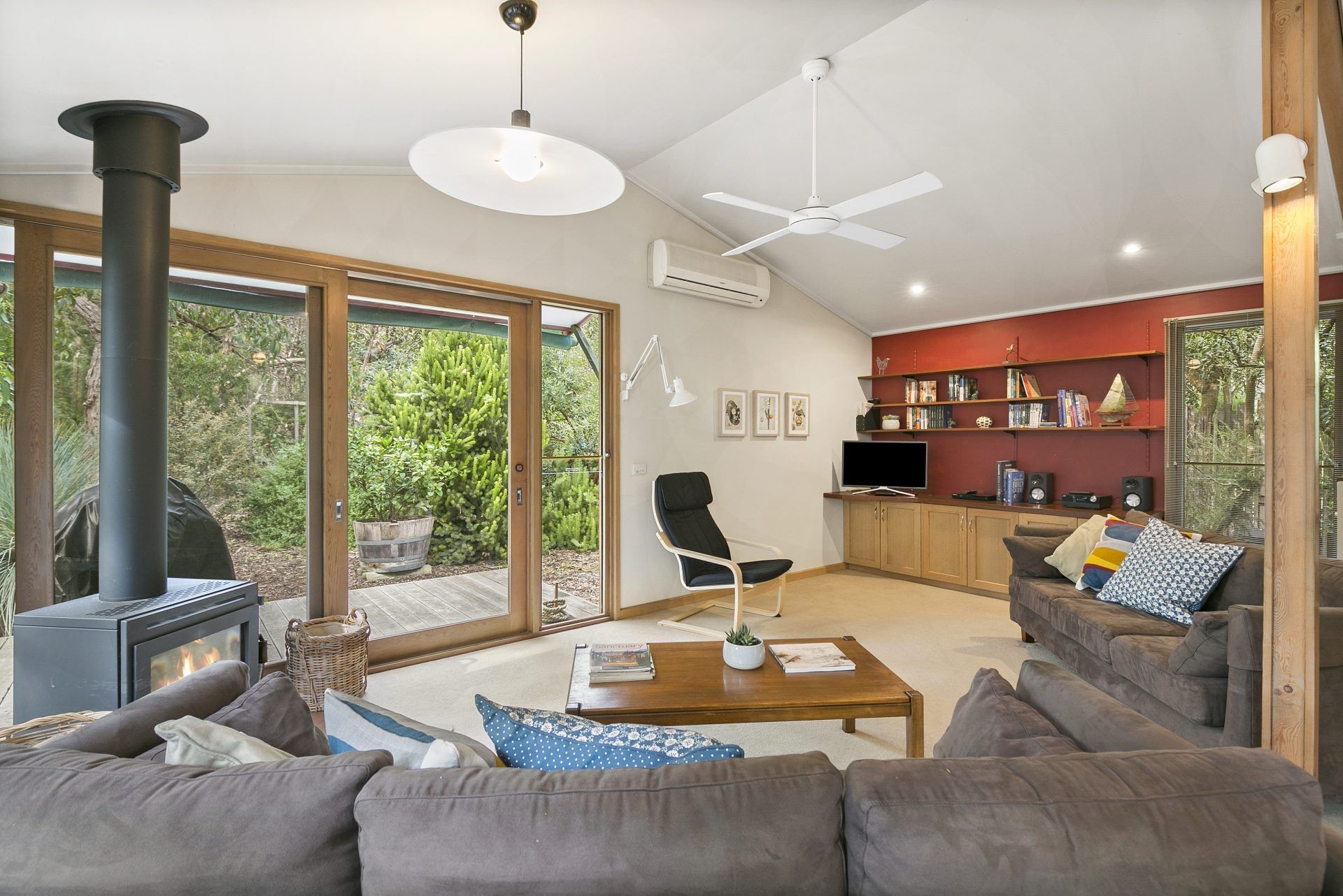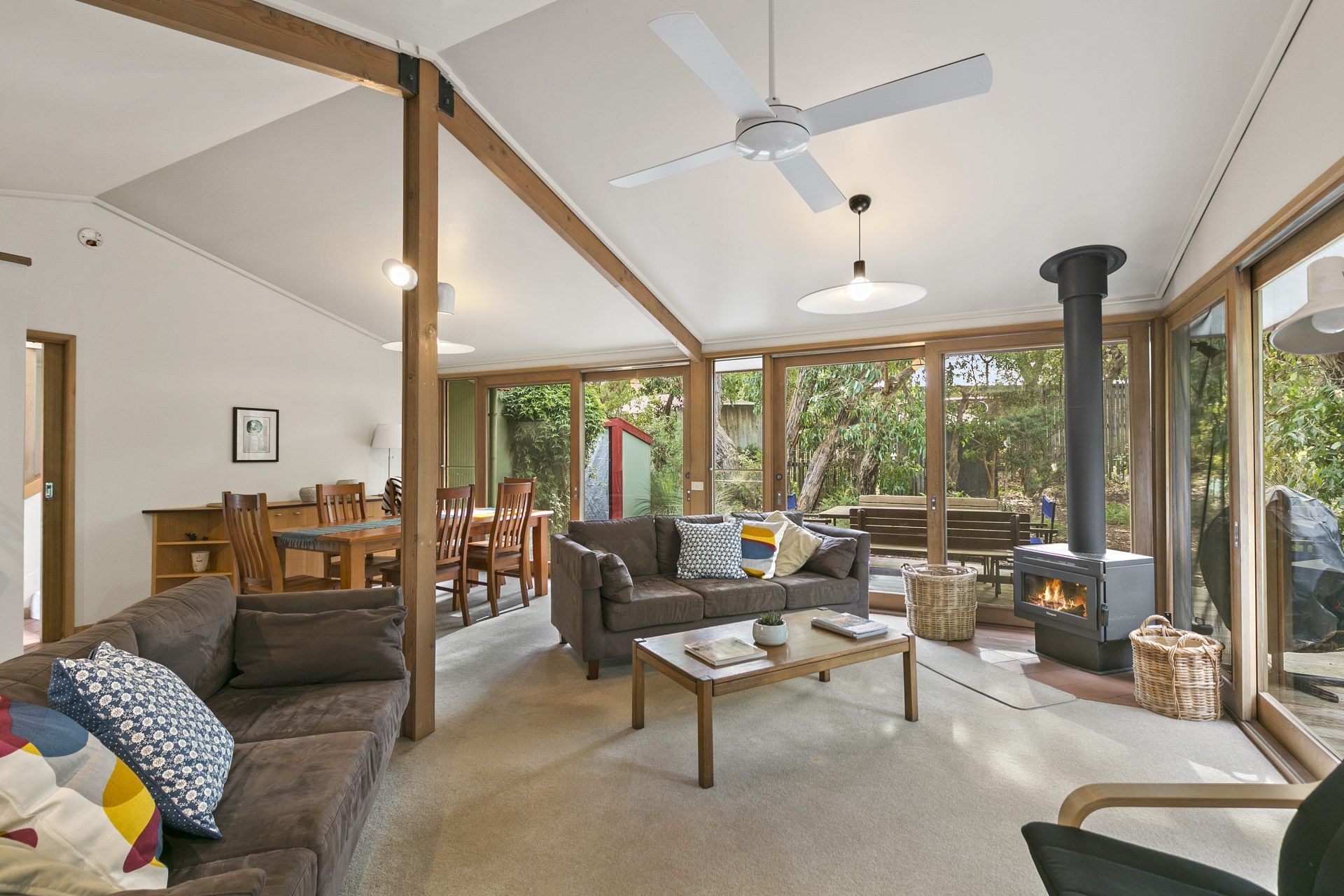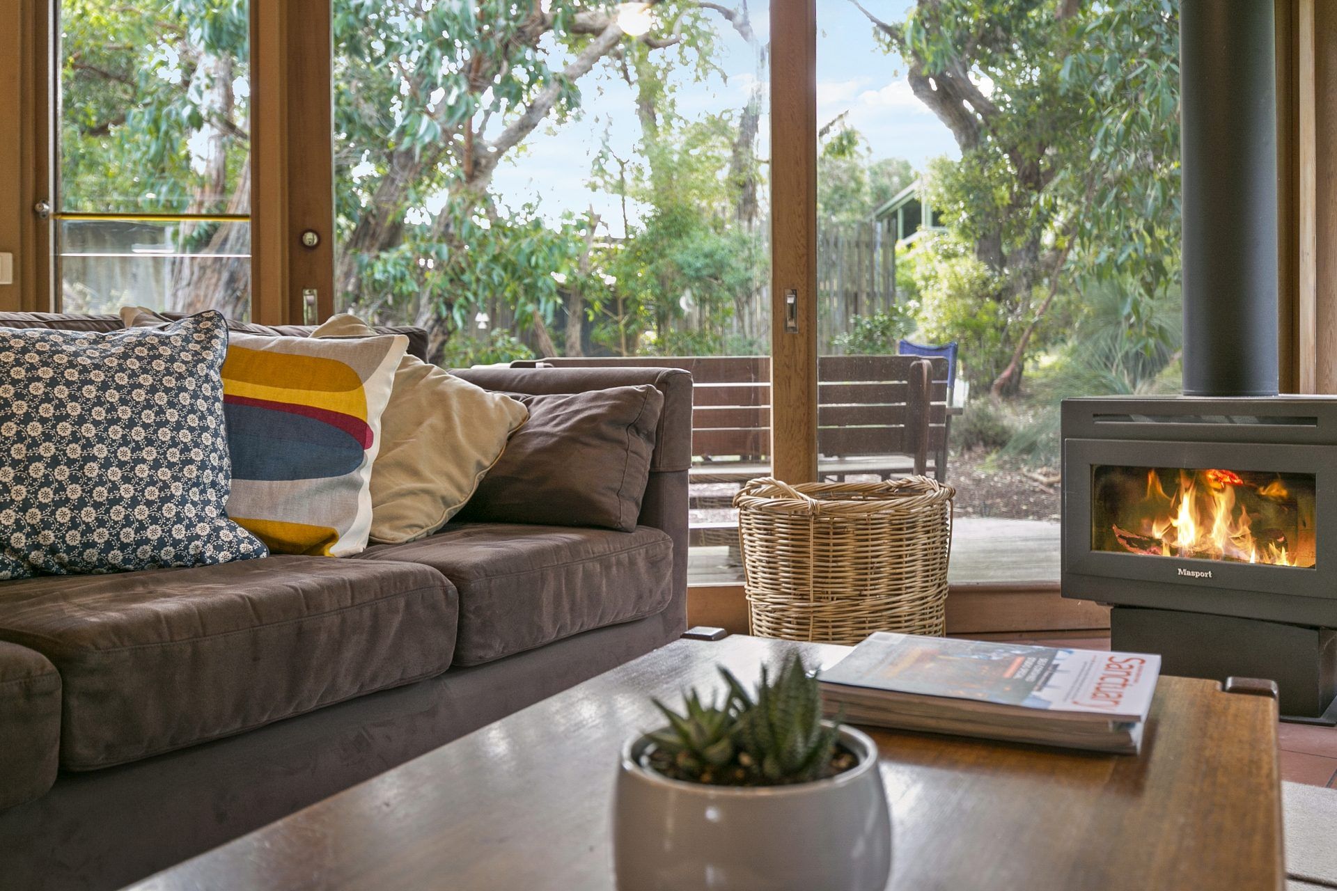 A cosy home away from home with everything you need for a relaxing beach holiday. The open plan kitchen/dining/living area is downstairs and has a cosy woodfire and reverse cycle air conditioner. The floor to ceiling windows in the living area look out to a lovely courtyard with native plants which attract loads of native birds - including blue wrens!