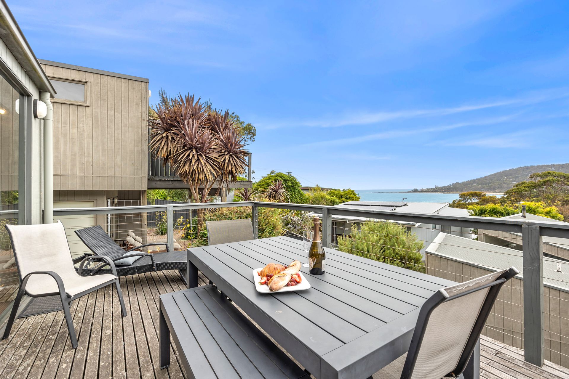 A generous outdoor deck perfect for morning coffee or evening dining with ocean views.