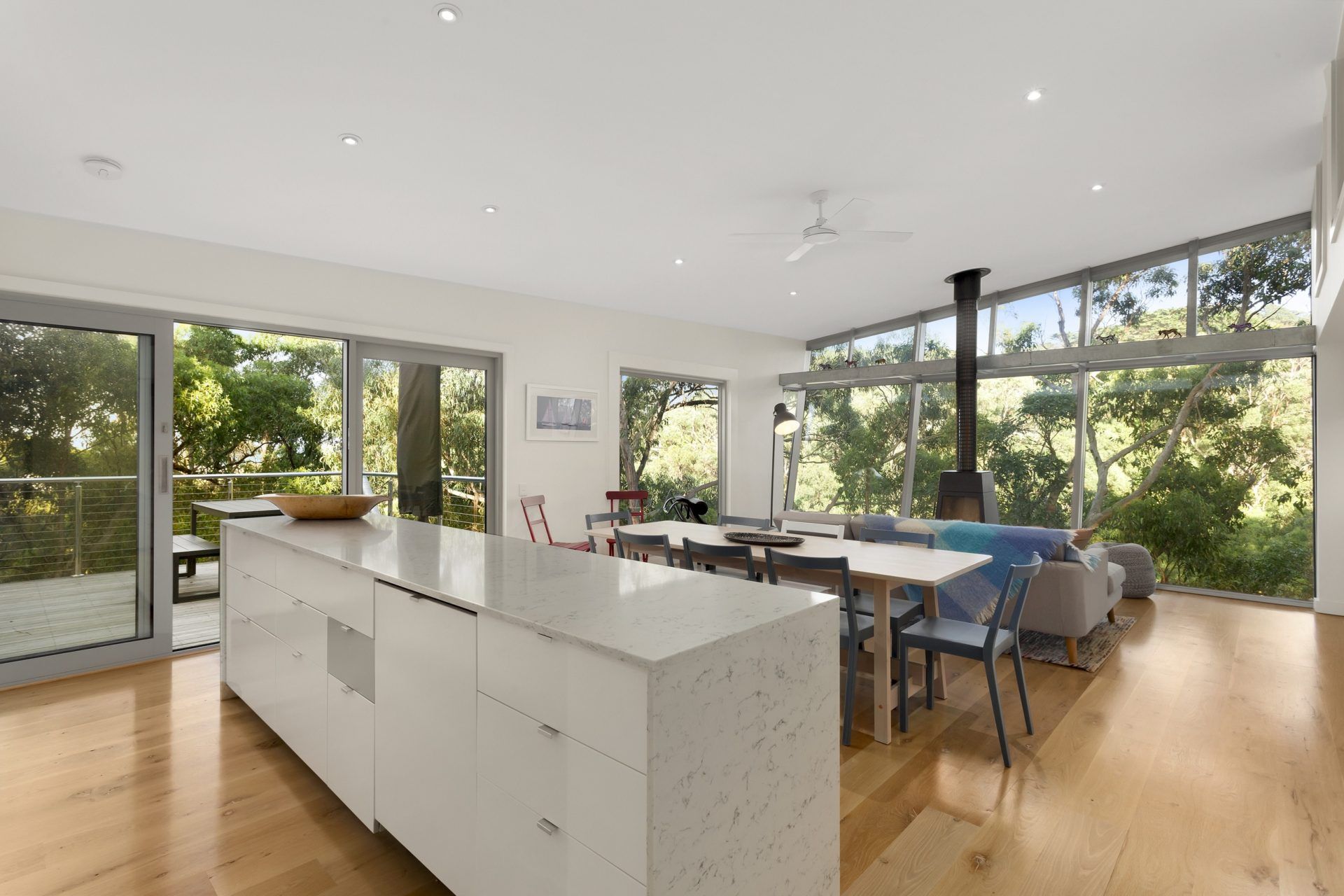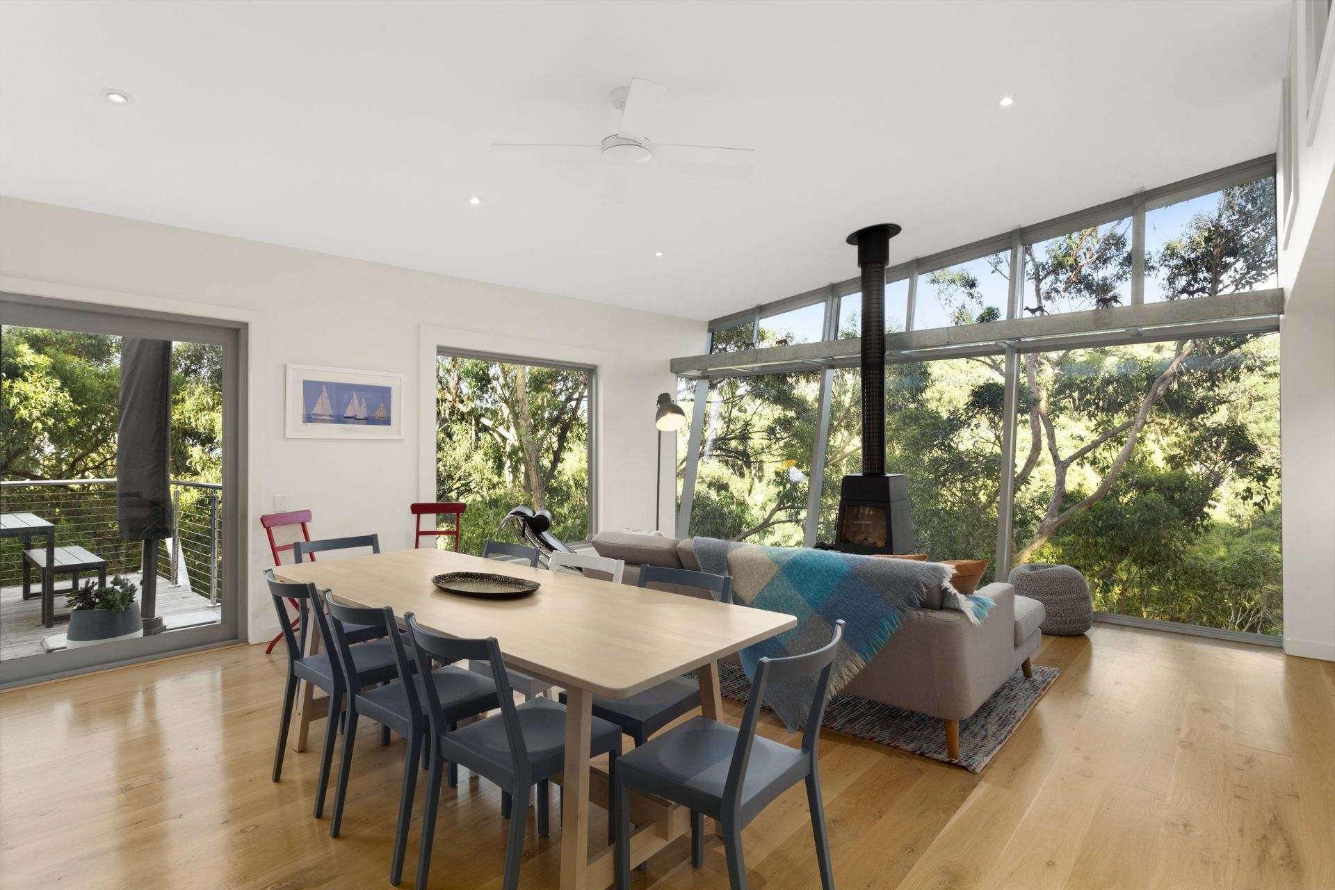 • Open-plan living and dining with timber floors