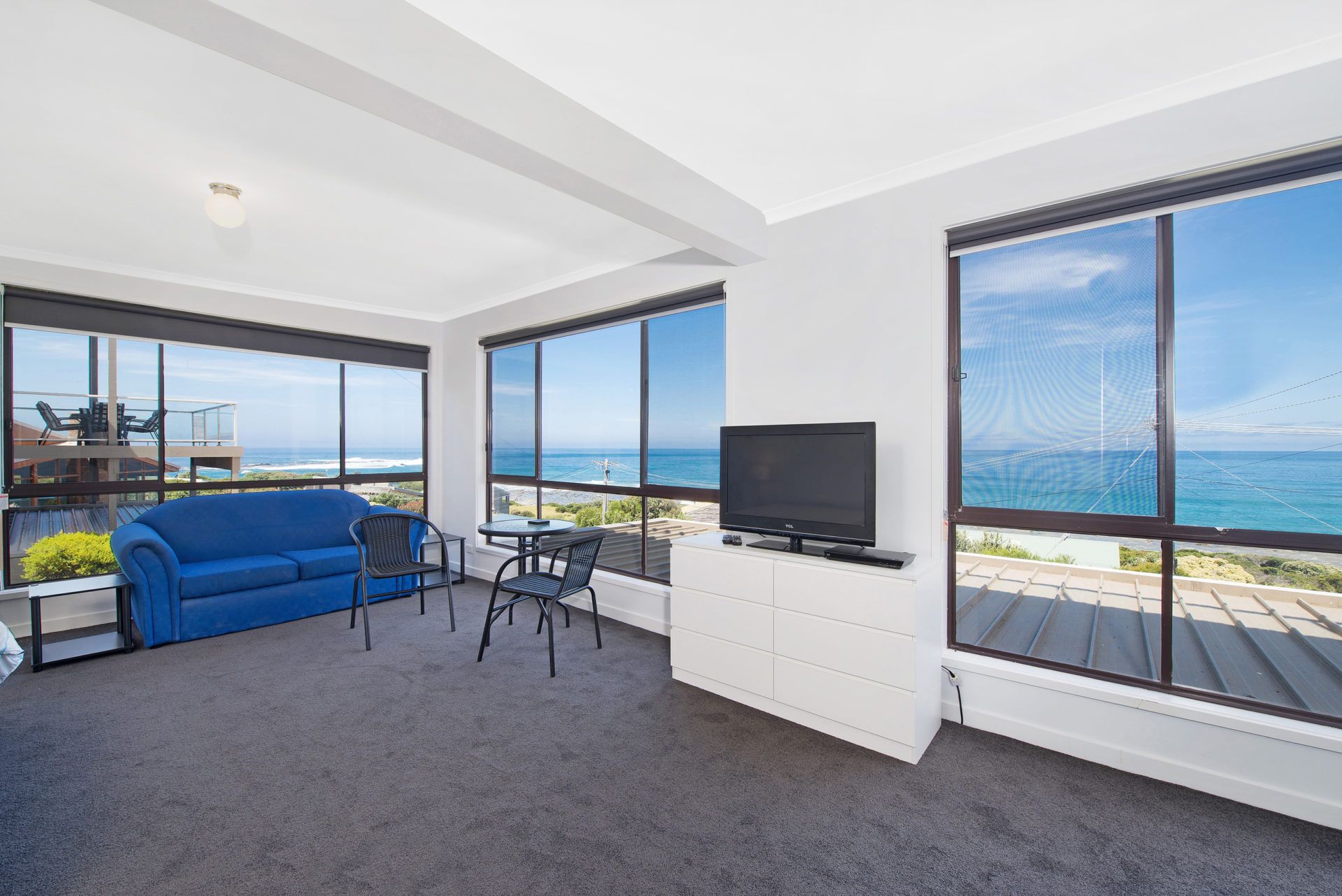 Also, as part of your holiday rental and situated adjacent to the main house, is a fully renovated modern studio apartment (very large), complete with queen bed (4th bedroom), en suite (shower, vanity & toilet), LCD & DVD with remote, fridge, reverse cycle air conditioning. Imagine, waking up in the morning to be greeted by sensational panoramic ocean views from your bed, life does not get much better than that.