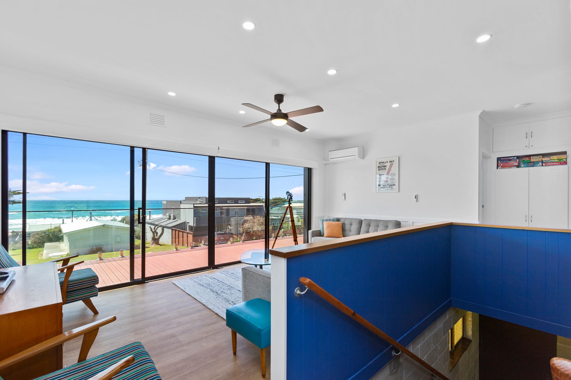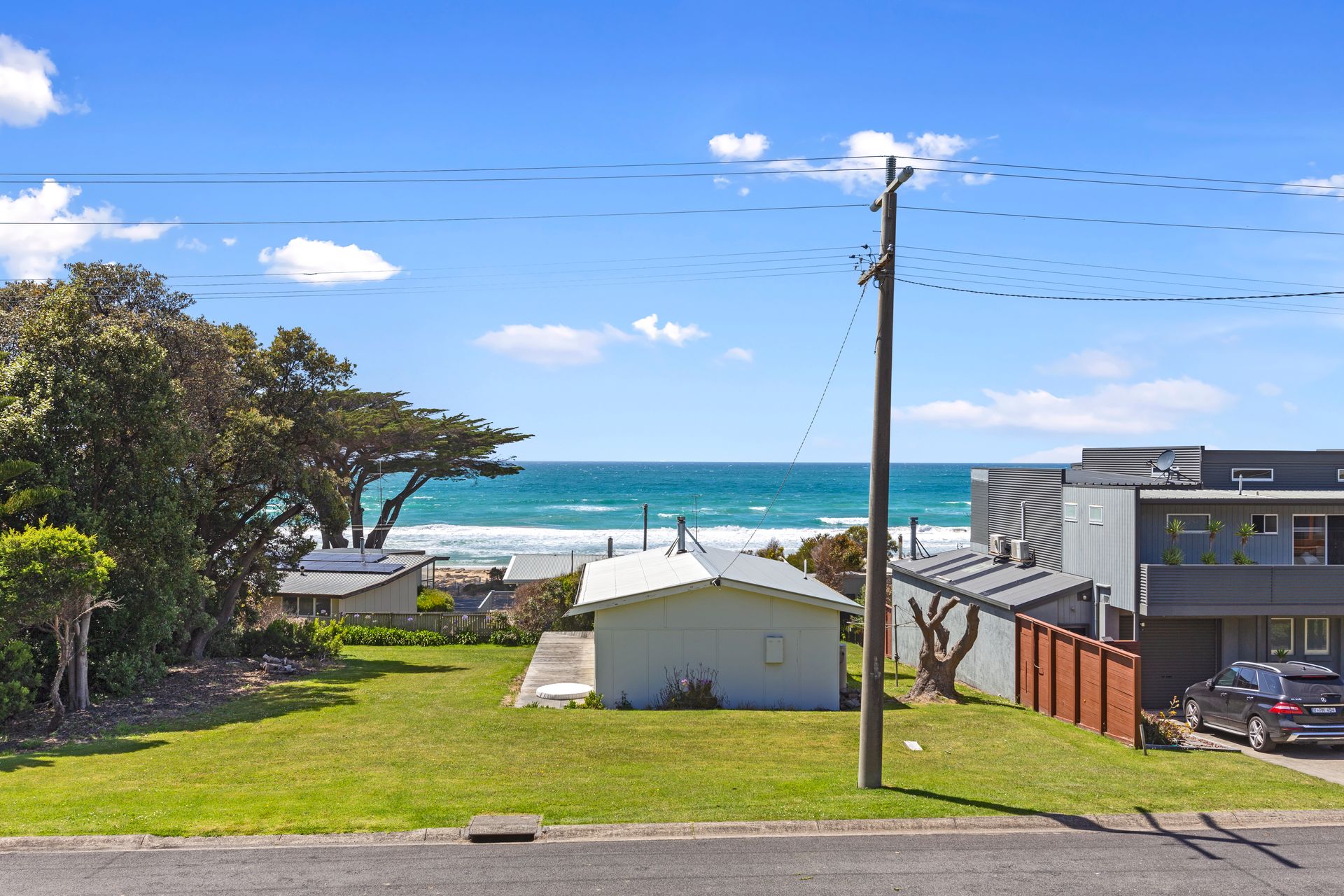 This tastefully renovated, retro beach house is located only 50m from the beach! Featuring superb panoramic views of the ocean overlooking Cape Patton, sweeping around to the Apollo Bay Harbour. Enjoy these ocean views from the long front deck, perfect in summer or from the comfort of the lounge room! With 3 fresh, bright bedrooms featuring ceiling fans and Nobo panel heaters along with reverse cycle heating and cooling in the lounge room, you will be comfortable all year round. The refurbished kitchen and back deck also offer views of the towering Otways Ranges. The large back and front yards also offer the perfect space to bring along your favourite family lawn game such as botcchi and croquet!