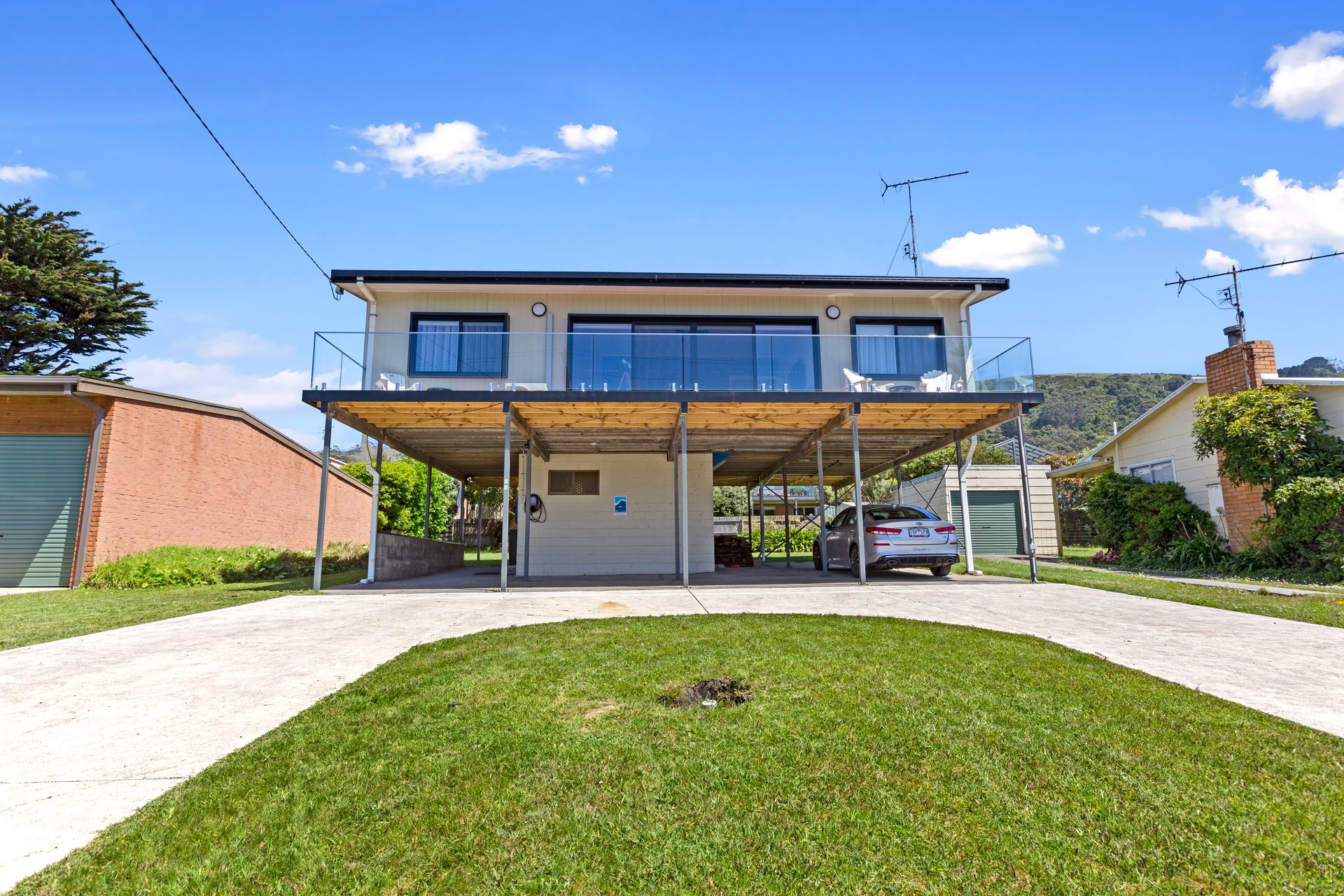 - Parking for 3 cars on driveway, provision for small car or boat undercover. A larger boat could also be parked on the concrete loop driveway. There is a large amount of undercover space at ground level for all those essentials you wish to bring that make your holiday break that much more special. An electronic vehicle charger is also located at this property.
