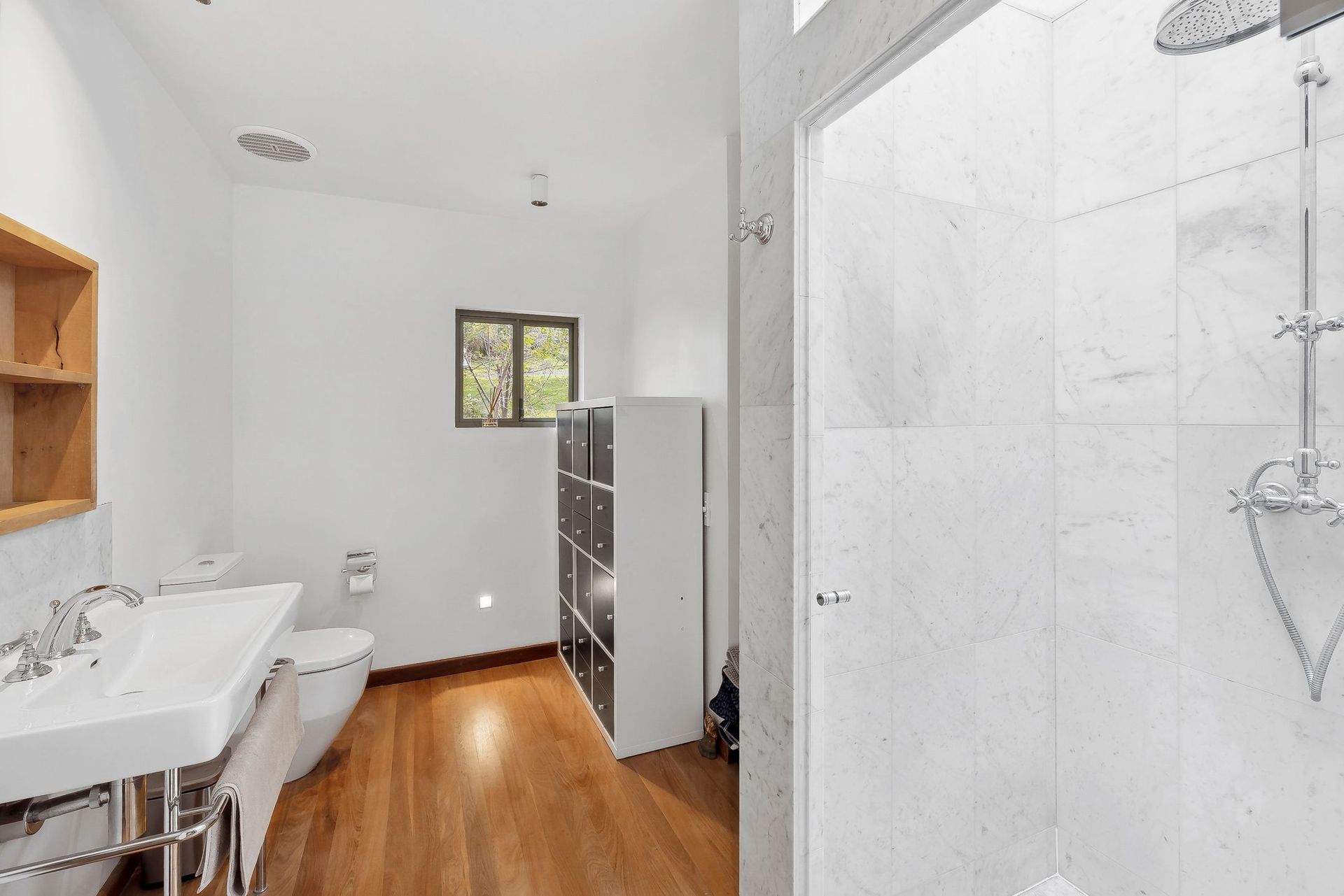Bathroom: Shower, separate toilet and vanity