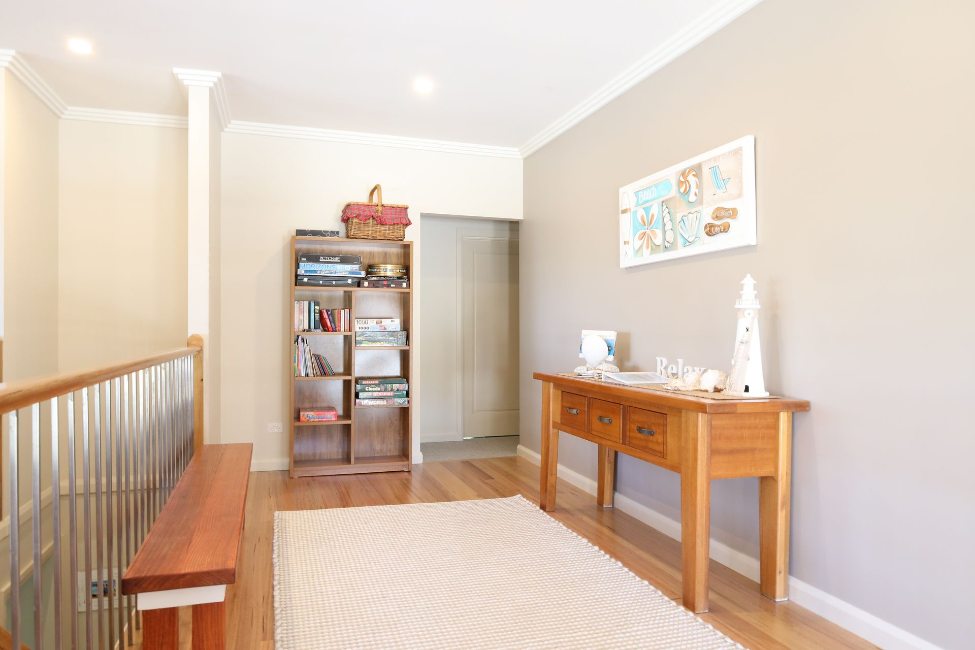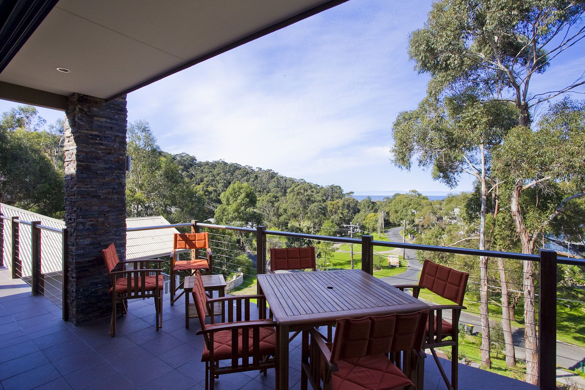 A spacious holiday home with ocean views right in the heart of Lorne and 3 minutes walk to the Cafe Strip. 5 bedrooms all with BIRs, large open plan kitchen living dining area, 2nd living room and 3 bathrooms.