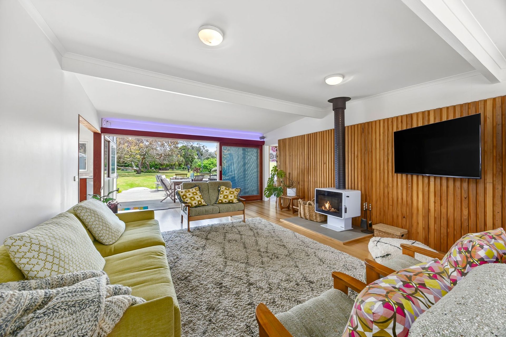 Inside, the home offers generous living areas with plenty of natural light, creating a warm and welcoming atmosphere. Each bedroom is thoughtfully designed to ensure a restful stay, while the open-plan layout allows everyone to gather comfortably. Whether you’re preparing meals in the fully equipped kitchen or relaxing in the lounge, you’ll feel right at home.
