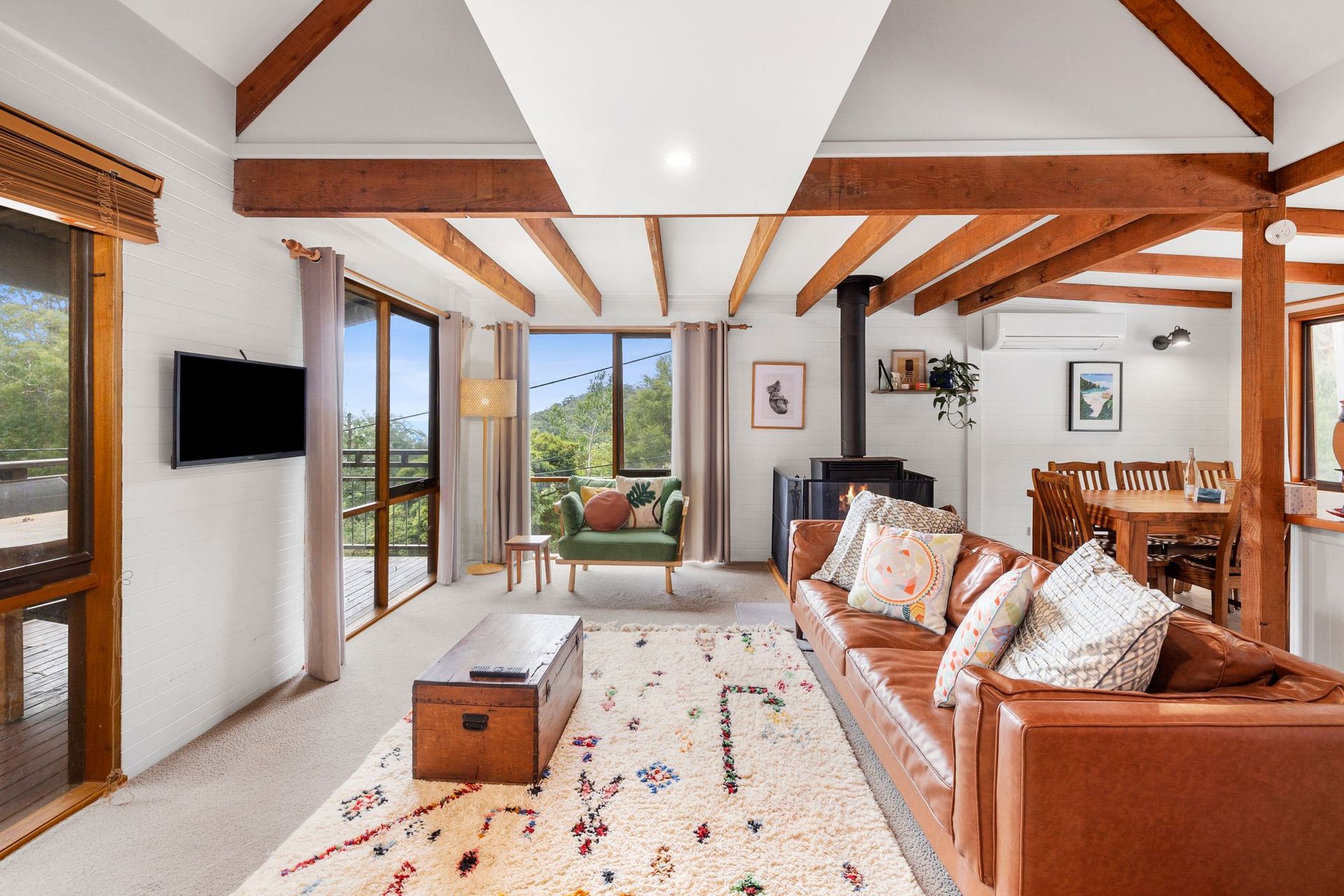 The home itself is two story offering open plan living downstairs and two lofted bedrooms flanking the lofted ceiling above. Other features include a cosy wood fire, filtered ocean views, wrap around balcony and all the coastal character you expect from a cottage by the sea. Add in the short stroll down to the Wye River beach, Pub and General Store and you'll find Fern Cottage has all the qualities of a magical getaway.