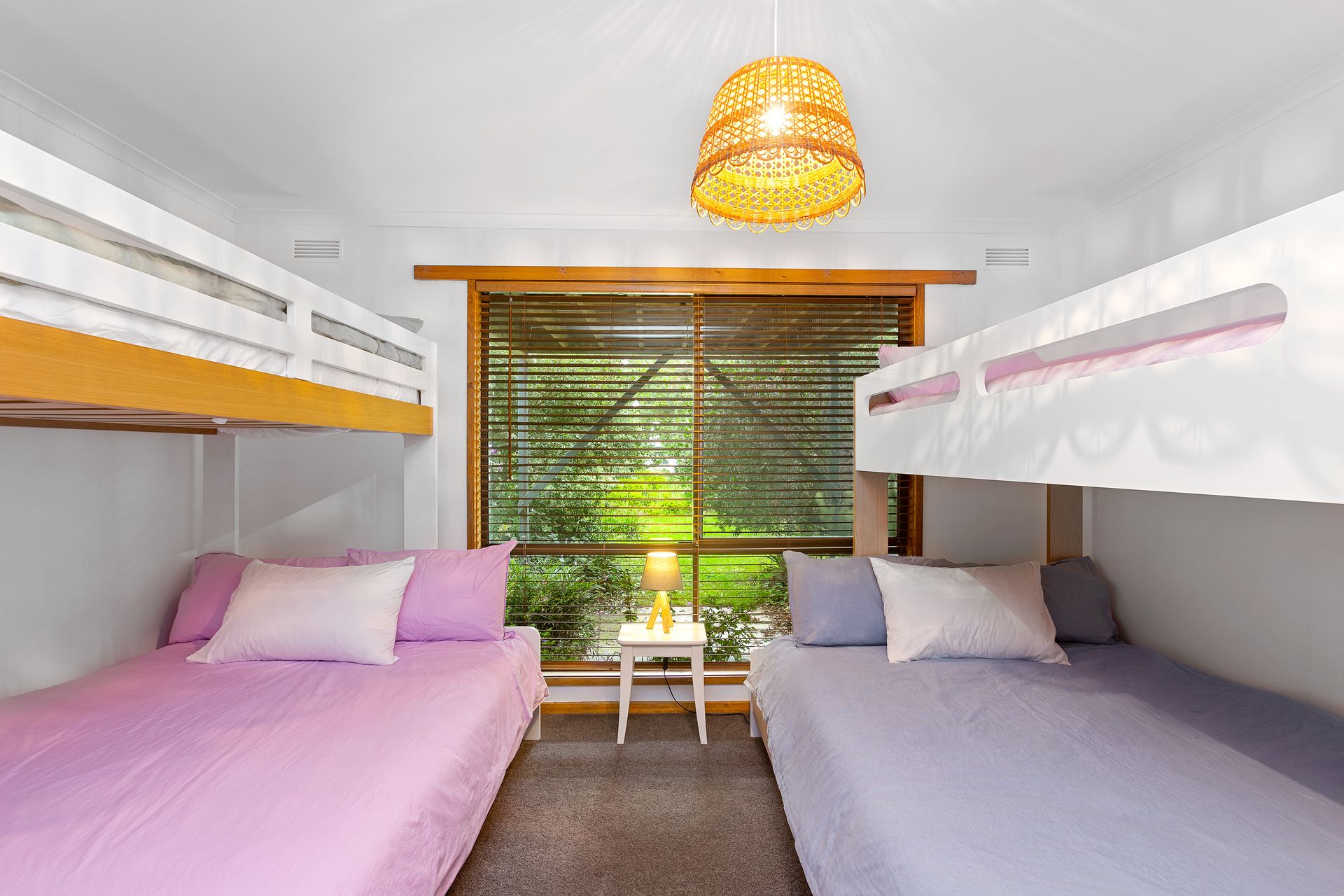 Located over 2 levels, the home is nestled into a beautiful un-fenced garden & backyard along with downstairs bedroom with double bunks, and bathroom/laundry. Upstairs opens up into a bright living/dining/kitchen area, with the generous, undercover deck, making it feel like you're up amongst the trees.