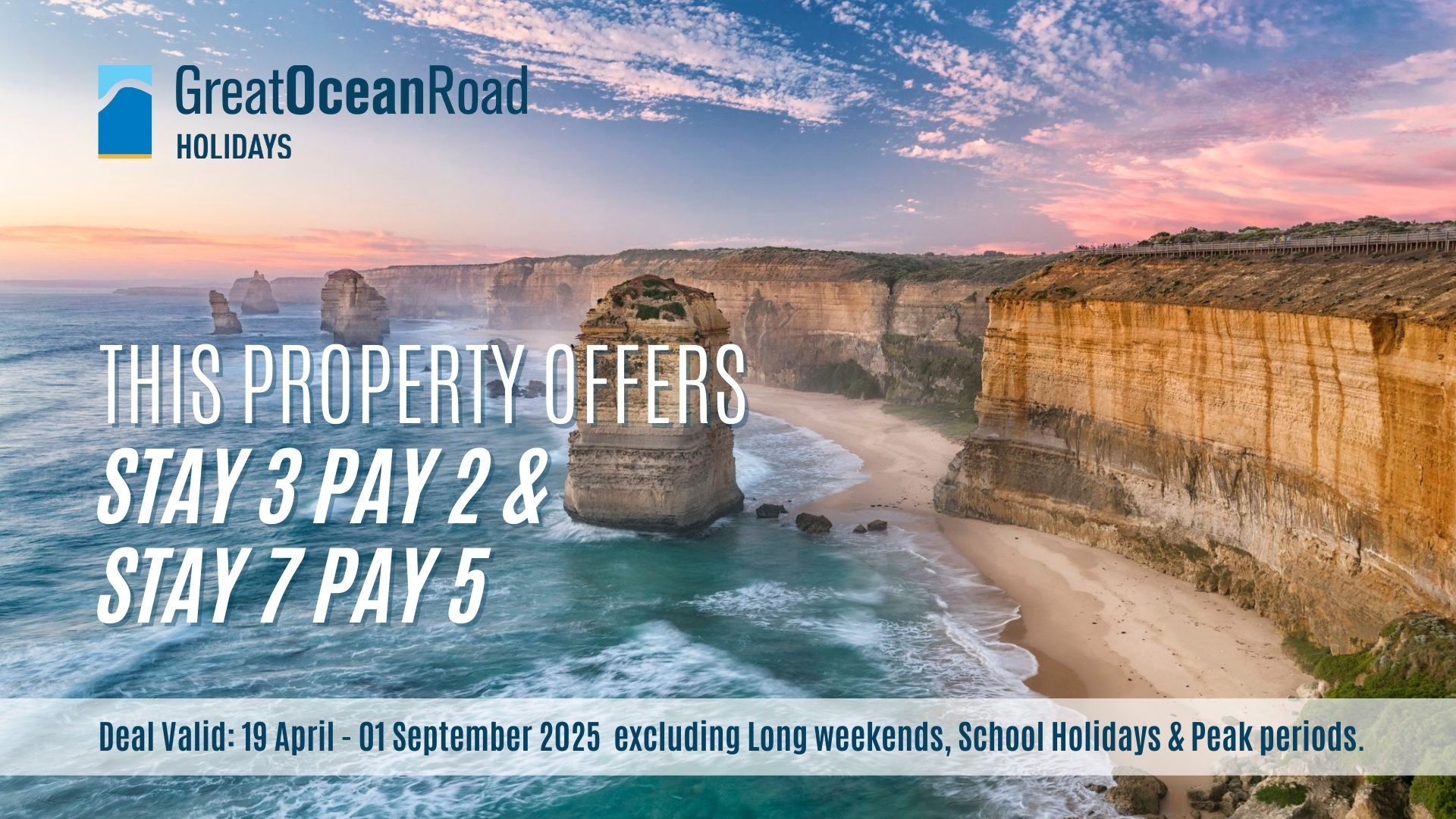This property offers STAY 3 PAY 2 and STAY 7 PAY 5 deals from 19 April to 01 September 2025, excluding long weekends, school holidays, and peak periods.