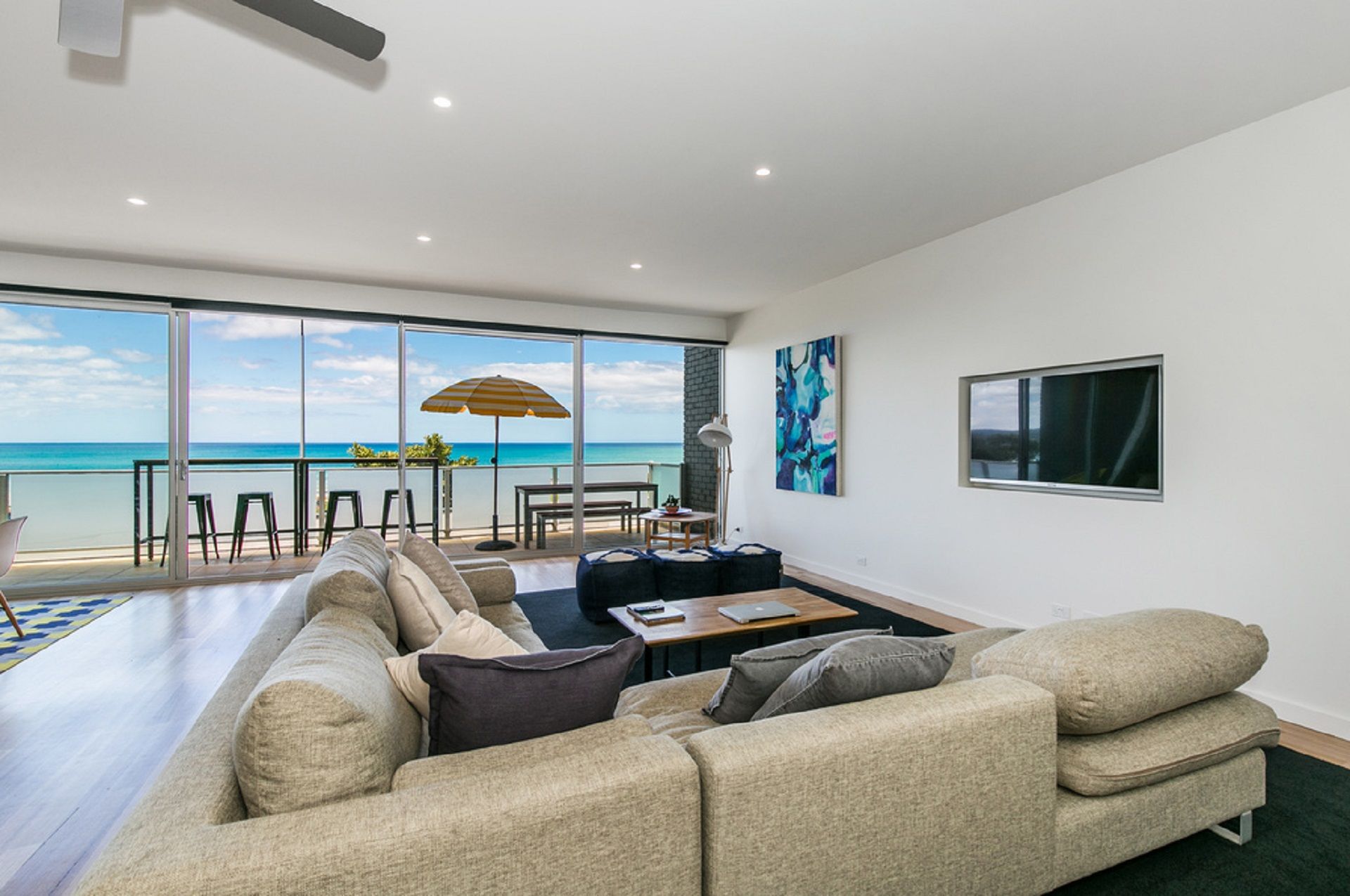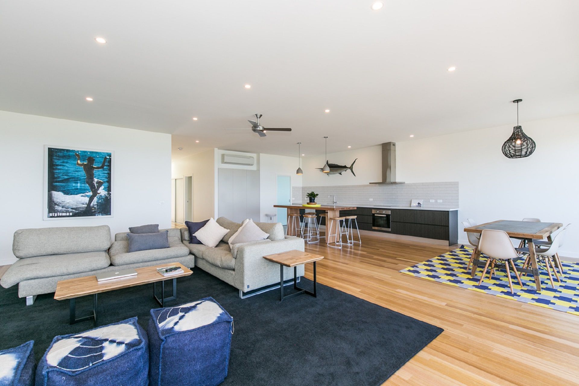Immerse yourself in the vibrant spirit of summer with the coastal charm of On The Beach, a modern surf-inspired retreat in the heart of Lorne. This contemporary haven effortlessly blends with the stunning natural beauty of the area, offering a perfect setting for relaxation and adventure.