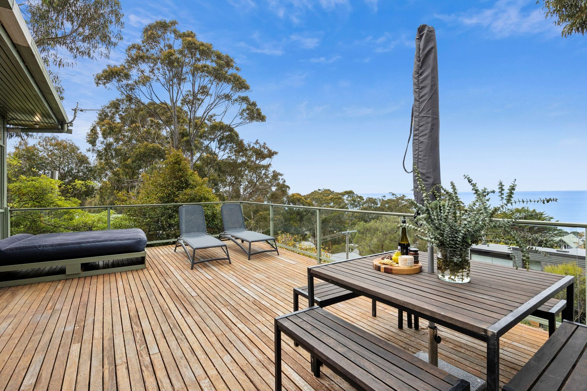 Set in a serene coastal setting, Horizon Views offers a stunning mix of panoramic ocean, skyline, and bushland views that capture the beauty of Lorne from every angle. The home is designed to make the most of its surroundings, creating a peaceful space where you can soak up the sights and sounds of nature while staying just moments from the beach and town centre.