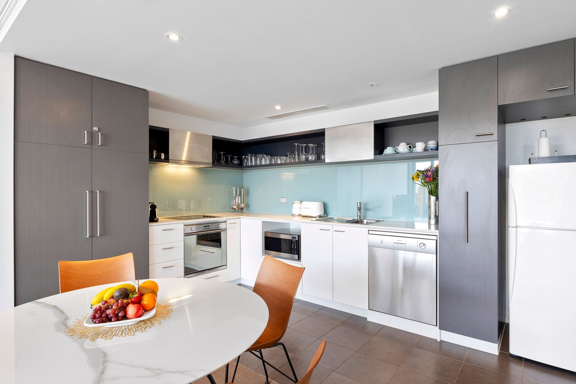 This top of the range self contained apartment has luxury furnishings, spa bath, indoor dining for 4, can sleep 2, huge outdoor terrace with water views, outdoor dining setting and a BBQ. Located 100 metres from the restaurants / main shopping strip and only 300 metres to the beach, this modern apartment complex offers secure undercover parking, a luxury swimming pool and landscaped gardens. So lock your car away, relax and unwind for the weekend or the ultimate holiday away.