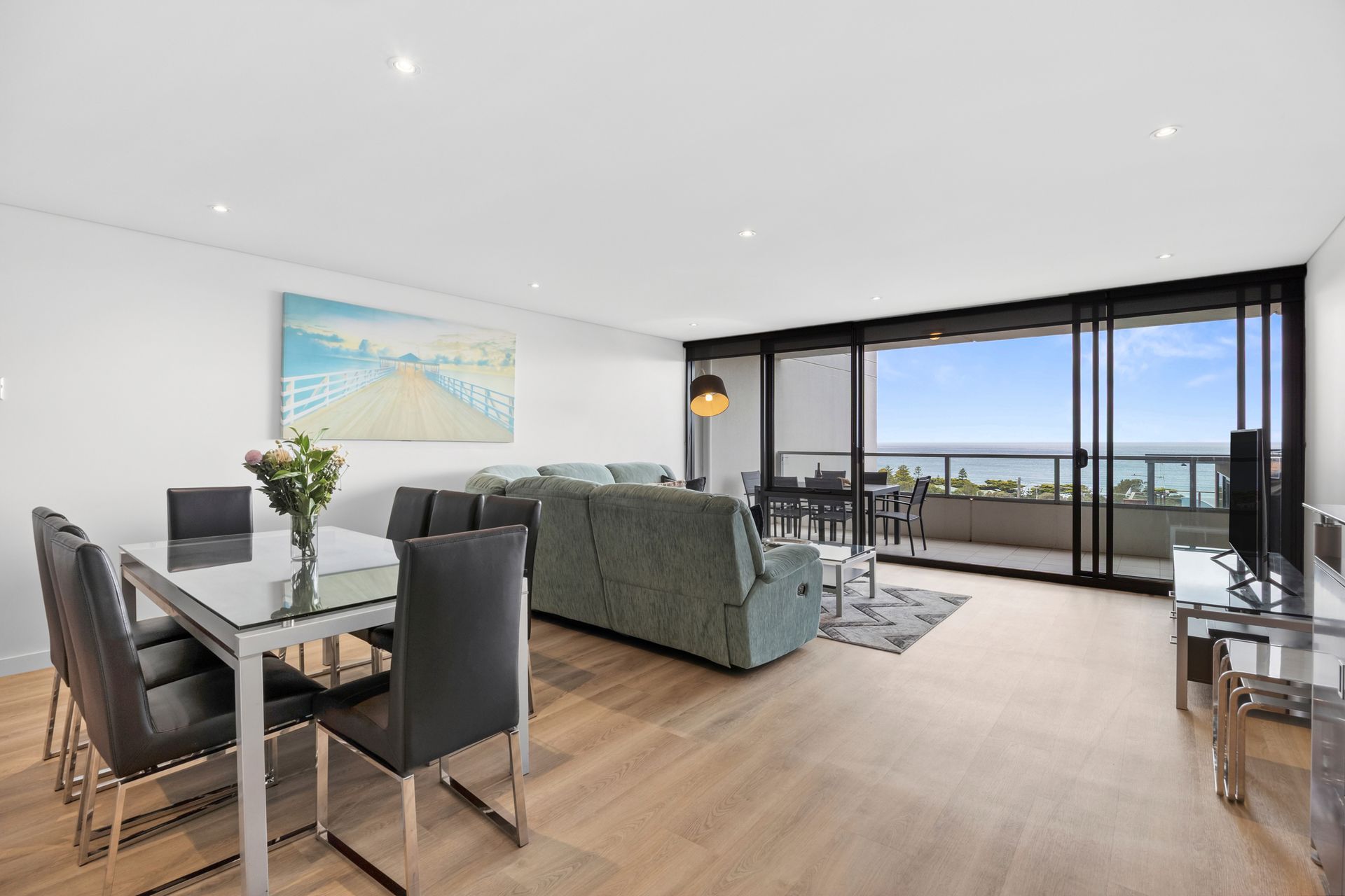 Apartment 40, located in the rear building takes in stunning Lorne Pier and Loutitt Bay views. Open plan living features a huge L-shape lounge, dining and kitchen area, all looking out over balcony and into the blue beyond.