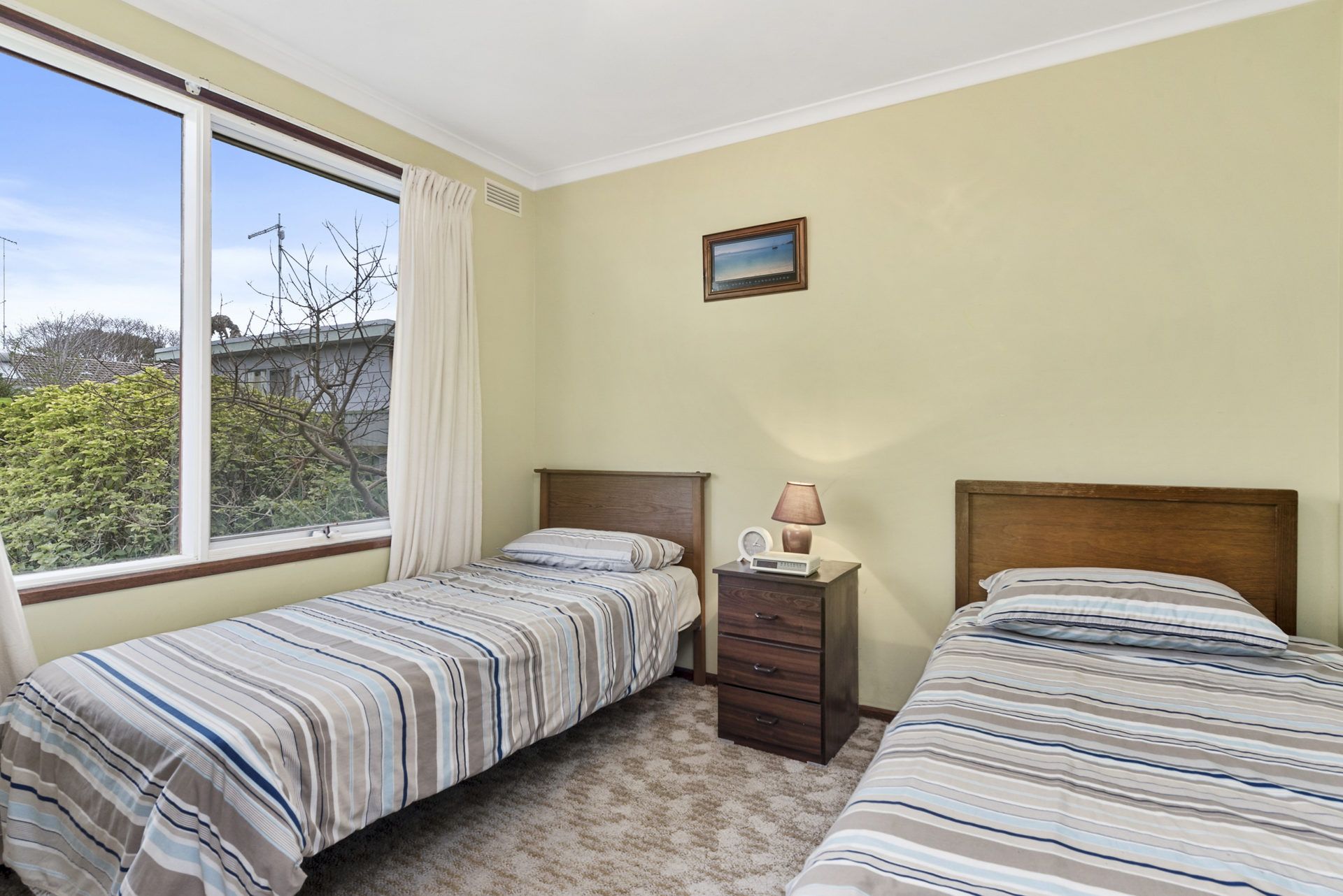- Bedroom 2: 2 x single beds, carpet