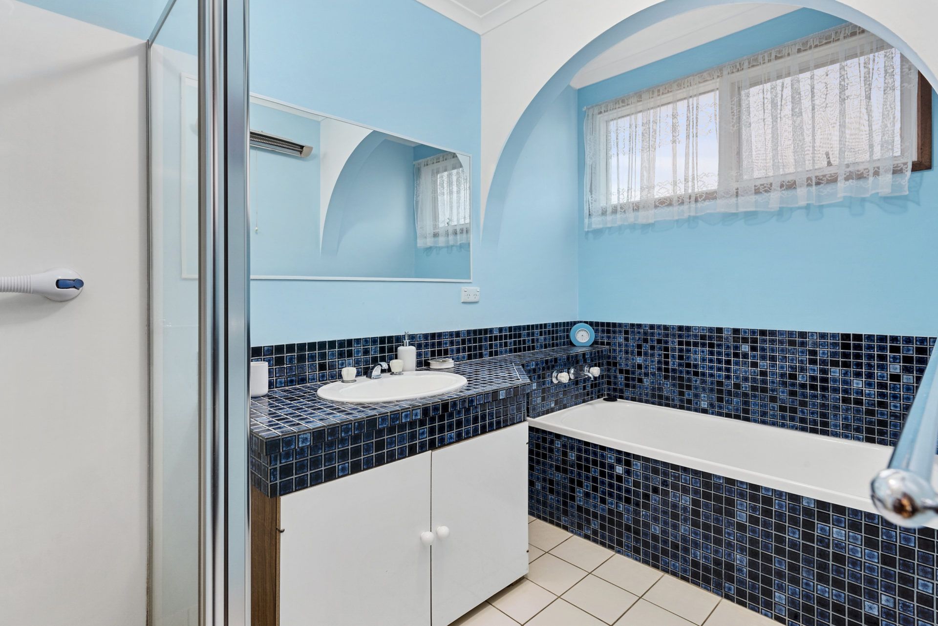 - Bathroom with bath, shower, vanity and separate toilet