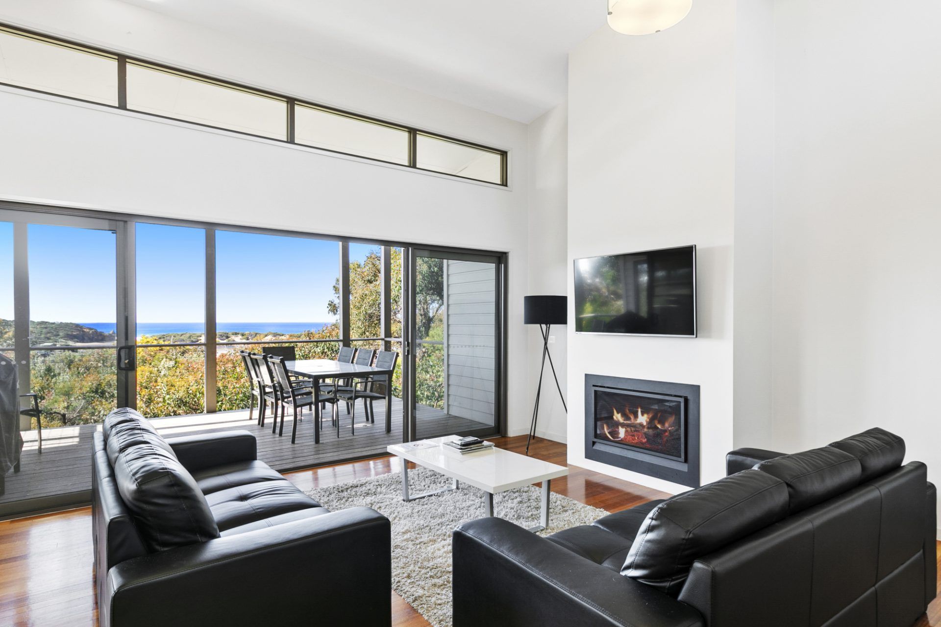 In the upstairs living area you'll be cosy in winter and cool in summer with reverse cycle heating and air conditioning, gas log fire, comfortable leather couches (seating 6) and smart TV with Netflix.