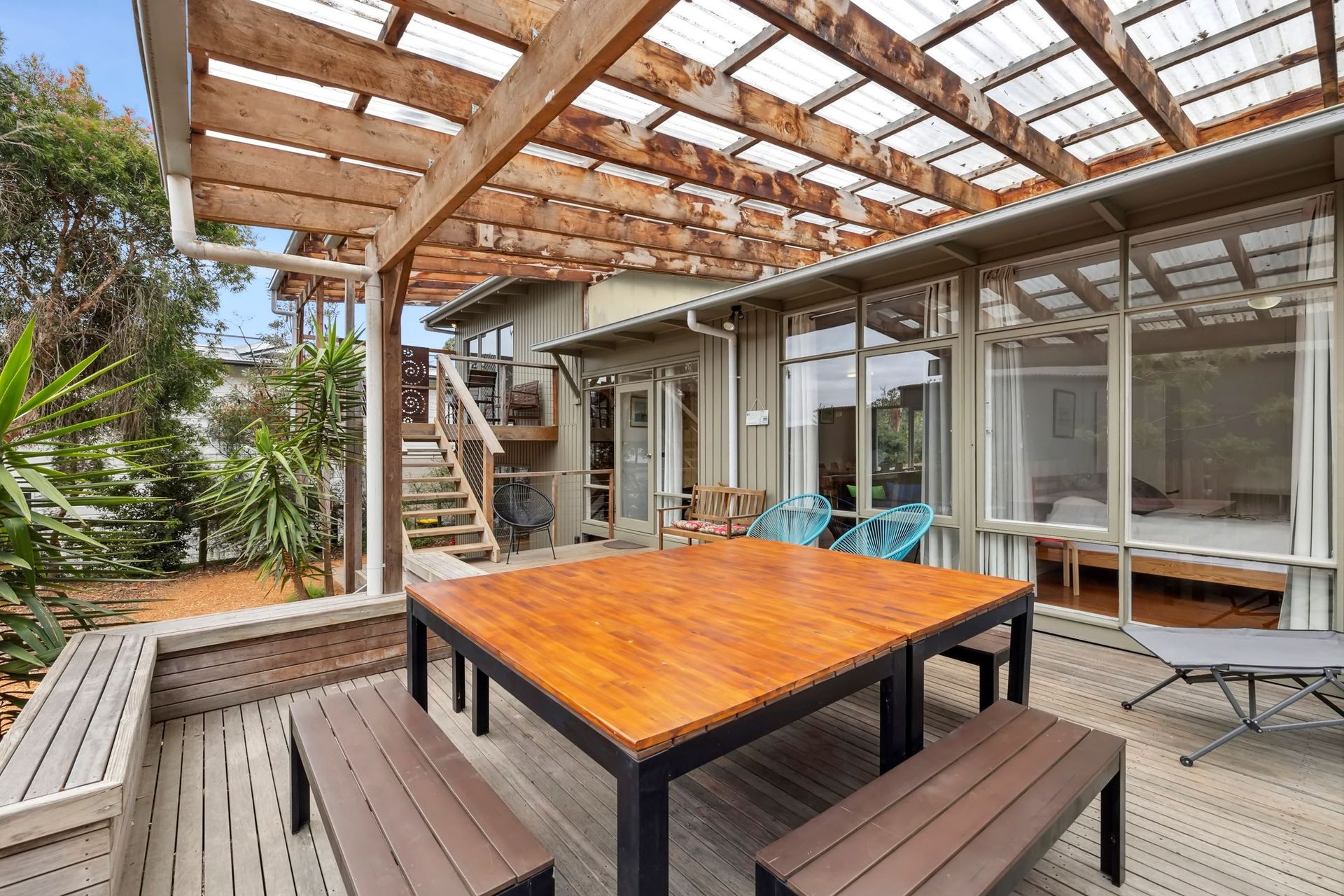 Set in a peaceful coastal setting, Moo-nah on Mawson invites you to slow down and enjoy the simple pleasures of seaside living. An upstairs deck with a hammock offers a quiet spot to relax, while the large main deck is surrounded by beautiful gardens and features outdoor furniture, a BBQ, a fire pit, and a tranquil water pond feature—ideal for gathering and unwinding.