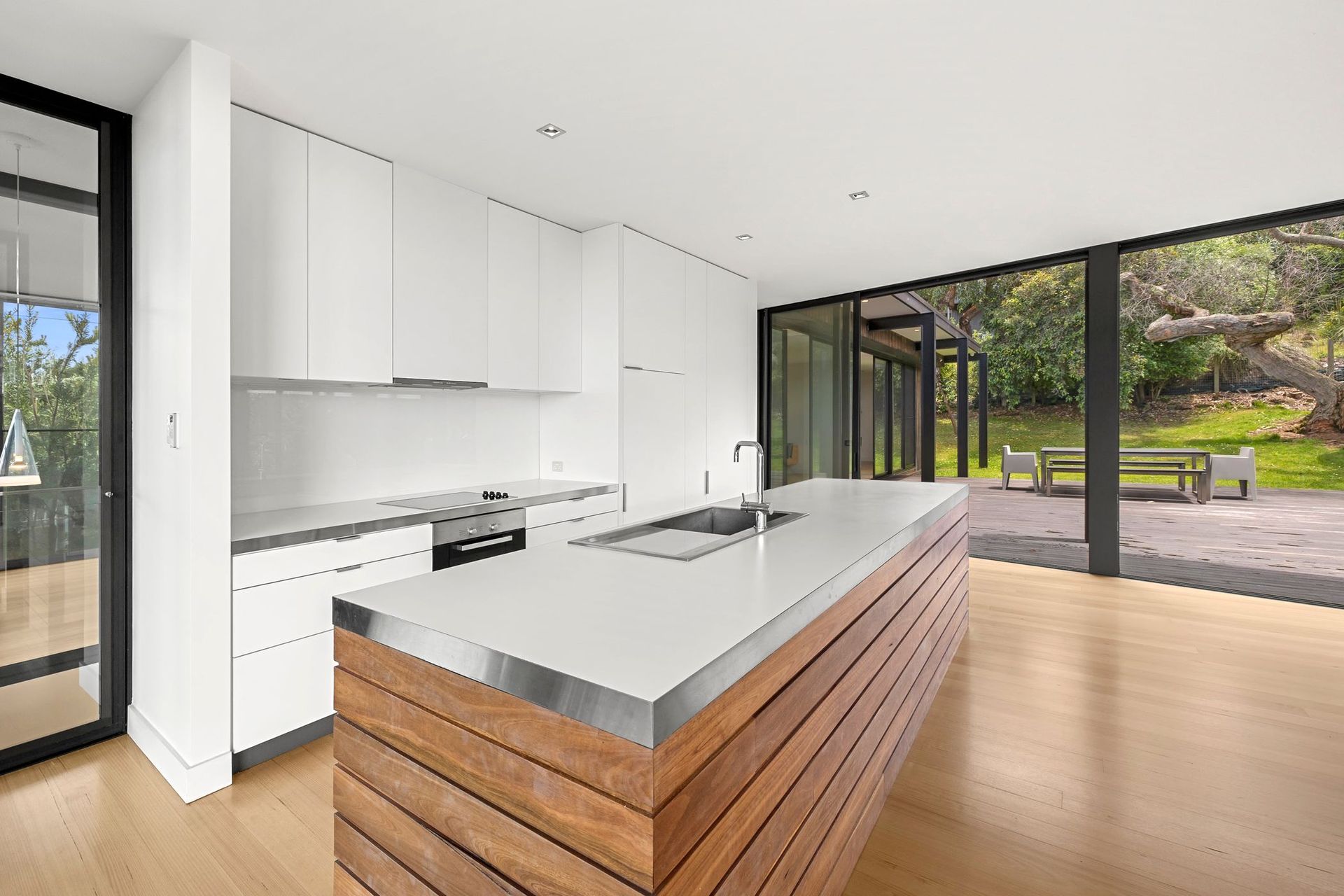 Welcome to Myoora. Combining understated architectural elegance with Lorne’s breathtaking natural beauty. Designed by Award winning Inarc Architects and Tim Allen Design, this three-bedroom, two-bathroom beachfront residence features clean lines and modern interiors that flow effortlessly into the surrounding landscape, with ocean views from most rooms. A spacious, secluded rear deck, complete with a Webber barbecue, is perfect for a quiet relax, holiday family meals or entertaining.