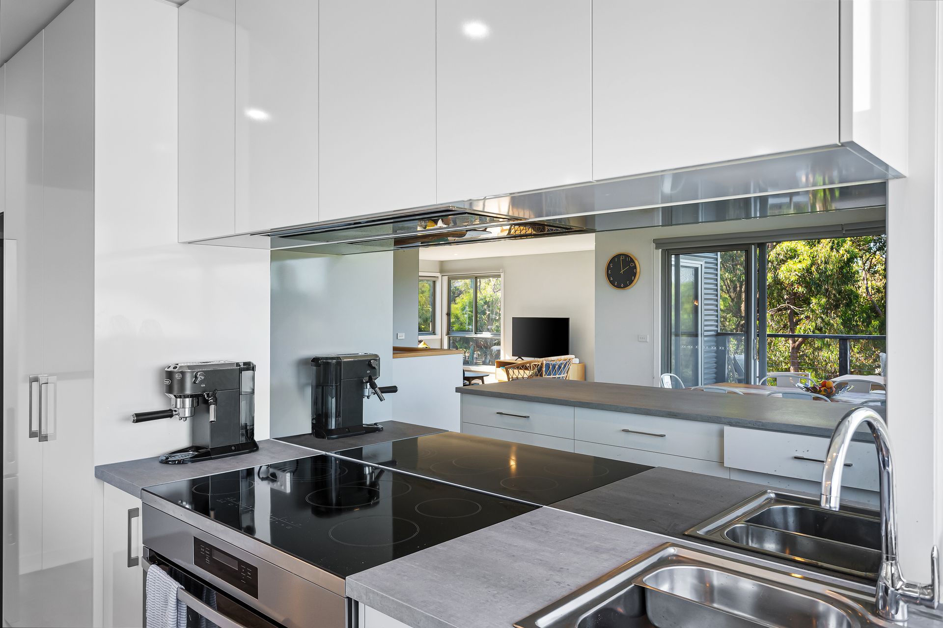 - Open kitchen with views of Split Point Lighthouse, equipped with modern kitchen appliances, including a coffee machine & coffee grinder (BYO coffee beans)