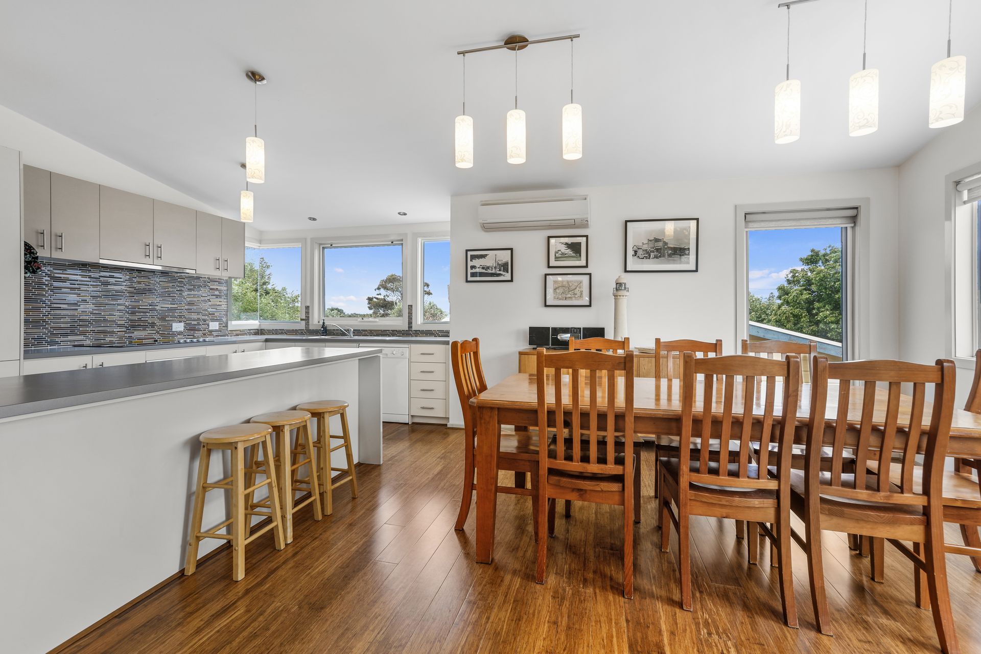 This fabulous property accommodates 2 families comfortably. It features an upstairs open plan kitchen/ living/meals. The living room has 3 large comfortable couches & a 65 inch smart TV. Upstairs on the outside deck is a Weber BBQ. Downstairs is a games room (double garage) that has both a table tennis and a pool table to keep the kids entertained.