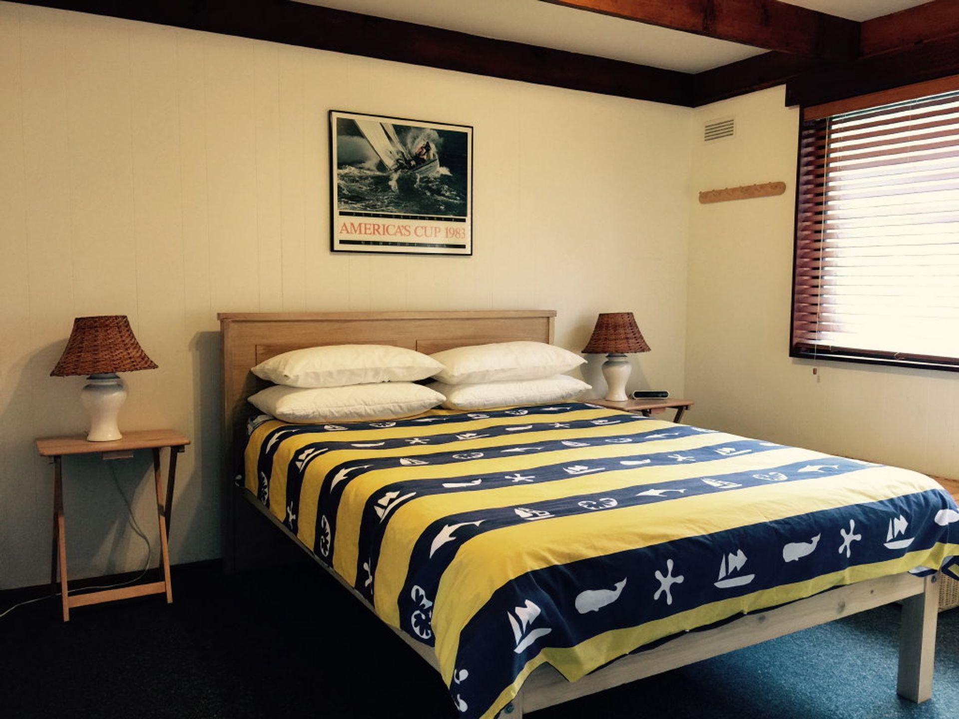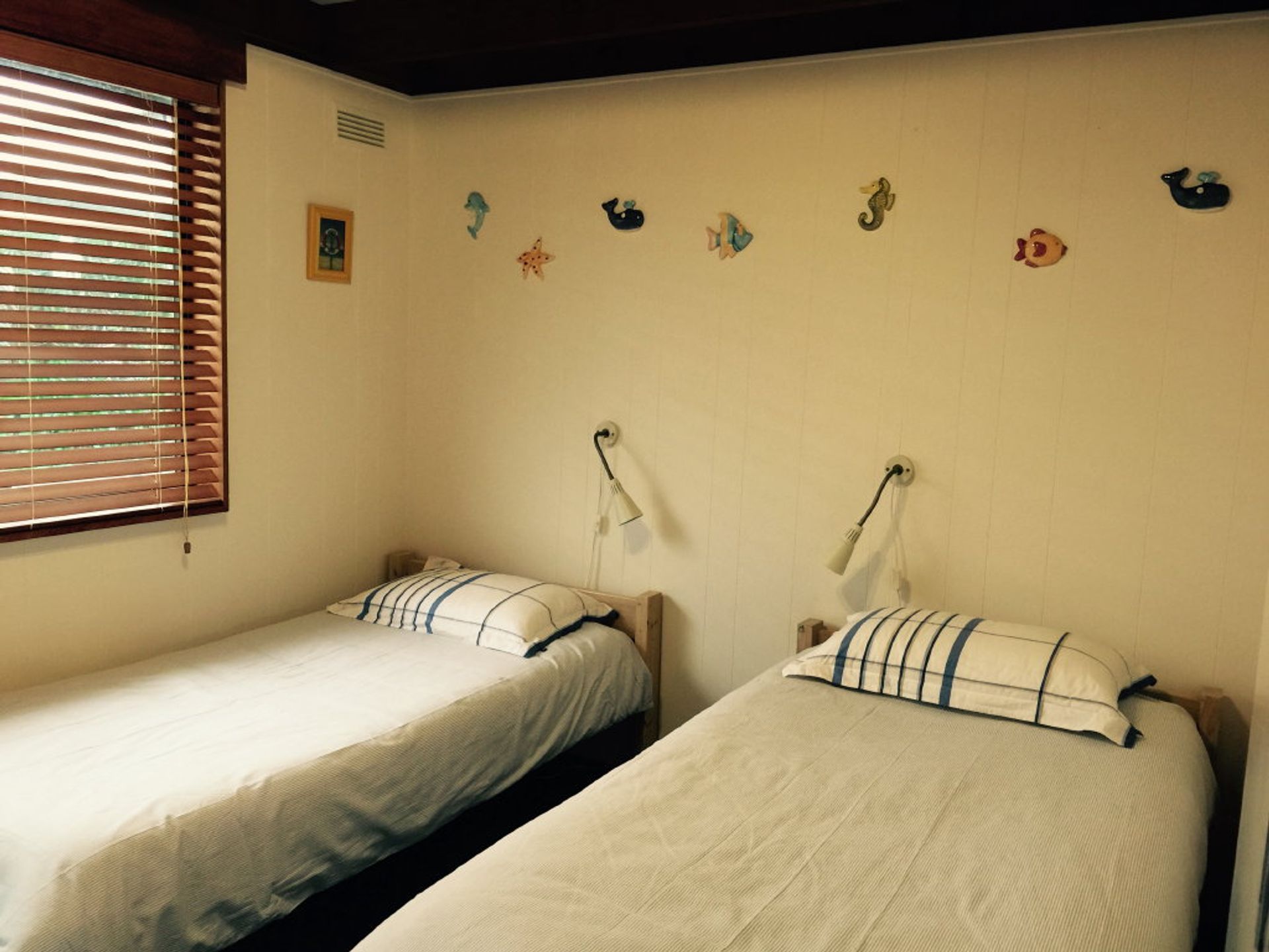 There are 2 bedrooms with queen beds, another with 2 single beds and the fourth bedroom has a bunk bed. These traditional beach houses have only 1 bathroom.