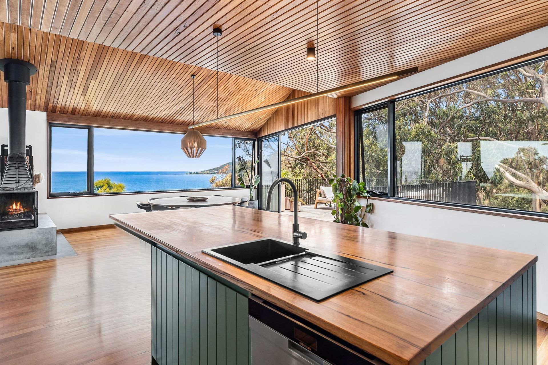 Set across three spacious levels, this beautifully appointed home offers generous proportions and a relaxed coastal atmosphere, comfortably accommodating up to nine guests. With elevated beach and bush outlooks, the property feels both private and connected to its natural surroundings, creating an ideal setting for a memorable group getaway.
