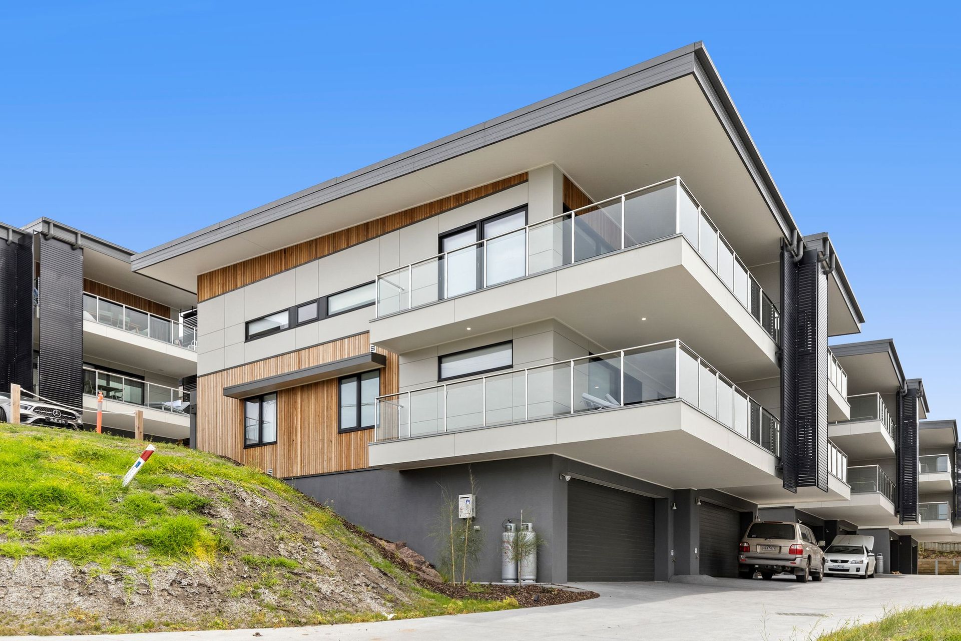 The residences offer zoned family accommodation across three levels. Ground level entry is via a double lock up garage with a laundry. The 2 floors above accessed by lift or stairwell. The mid-level comprises 3 impeccably furnished bedrooms and a hallway study space. Both rear and middle bedroom share a main bathroom whilst the master features an ensuite and spacious private balcony with a lovely view and outdoor setting.