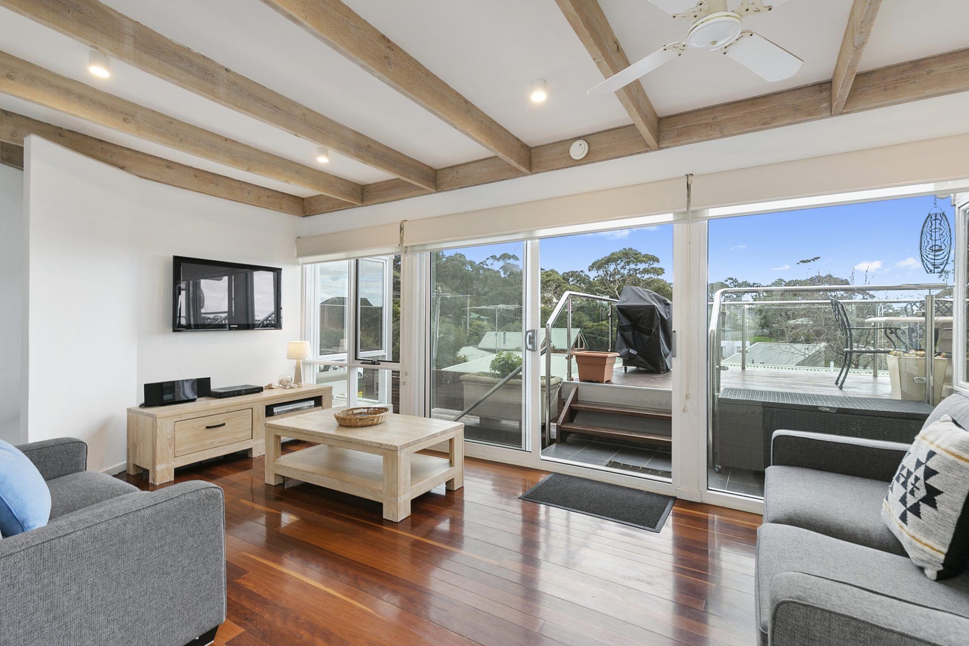 The outdoor deck is the perfect spot to unwind, with a BBQ and outdoor dining area for al fresco meals while enjoying the sea breeze. Whether you're relaxing indoors or enjoying the outdoor charm, this unit is an inviting and comfortable haven for your beach holiday.