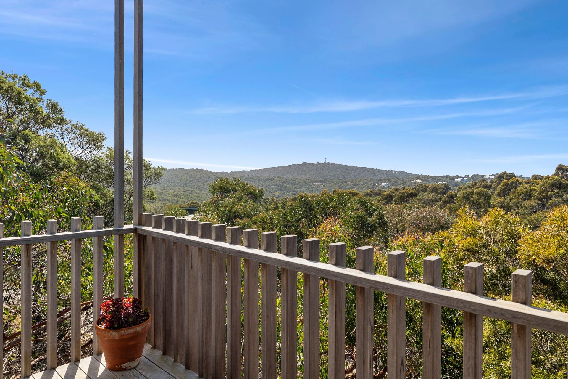 Set on a large native allotment with views across the Otways Forest and beyond Tree Top House has 4 bedrooms, 3 bathrooms and 2 large outdoor entertaining decks with stunning 180 degree views.