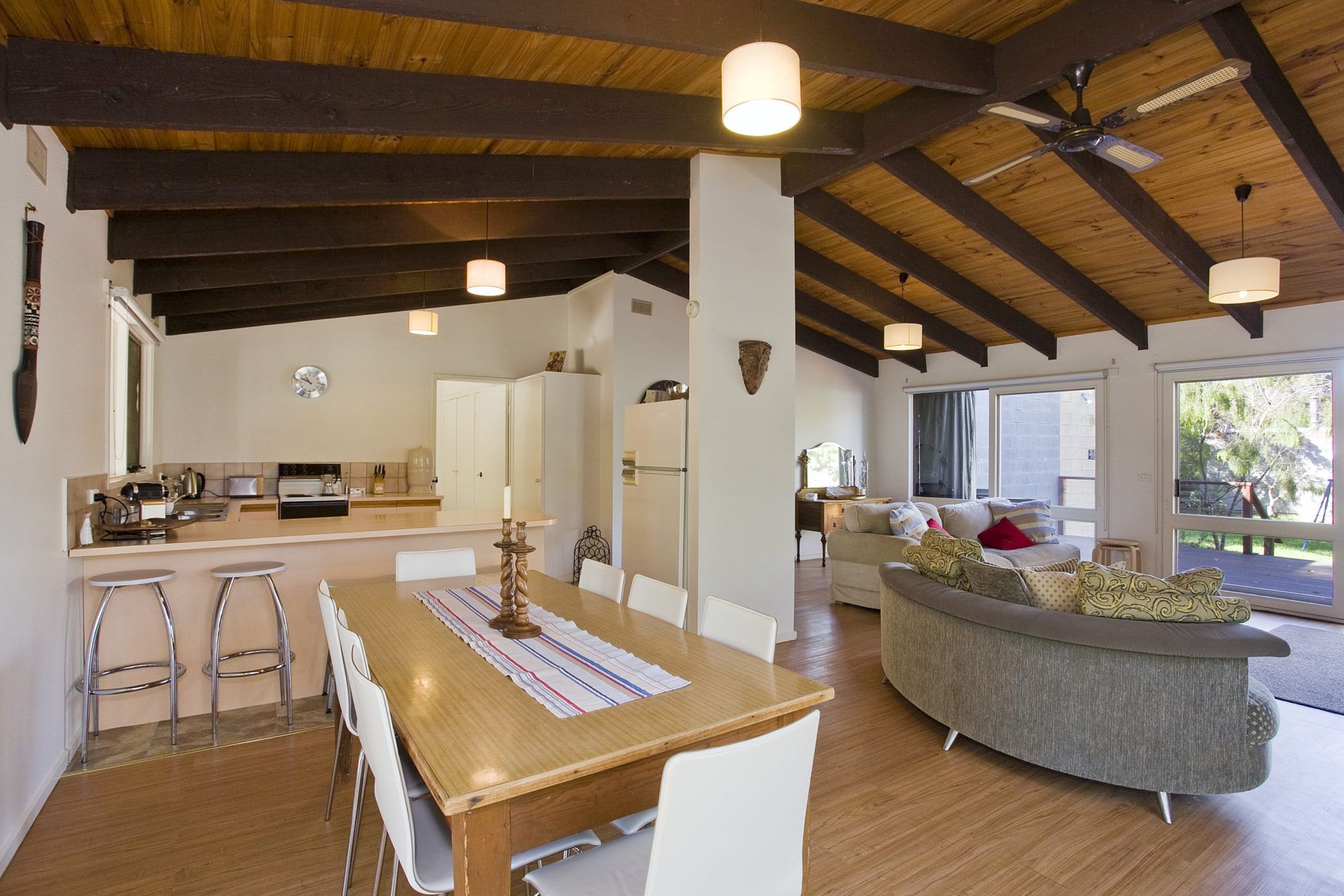 Open plan Kitchen, dining and living area. Dining table to seat 8 Living area has flat screen TV, DVD and ceiling fan The kitchen has electric cooking, microwave and Nespresso machine* Large furnished deck area has a gas BBQ and patio heater