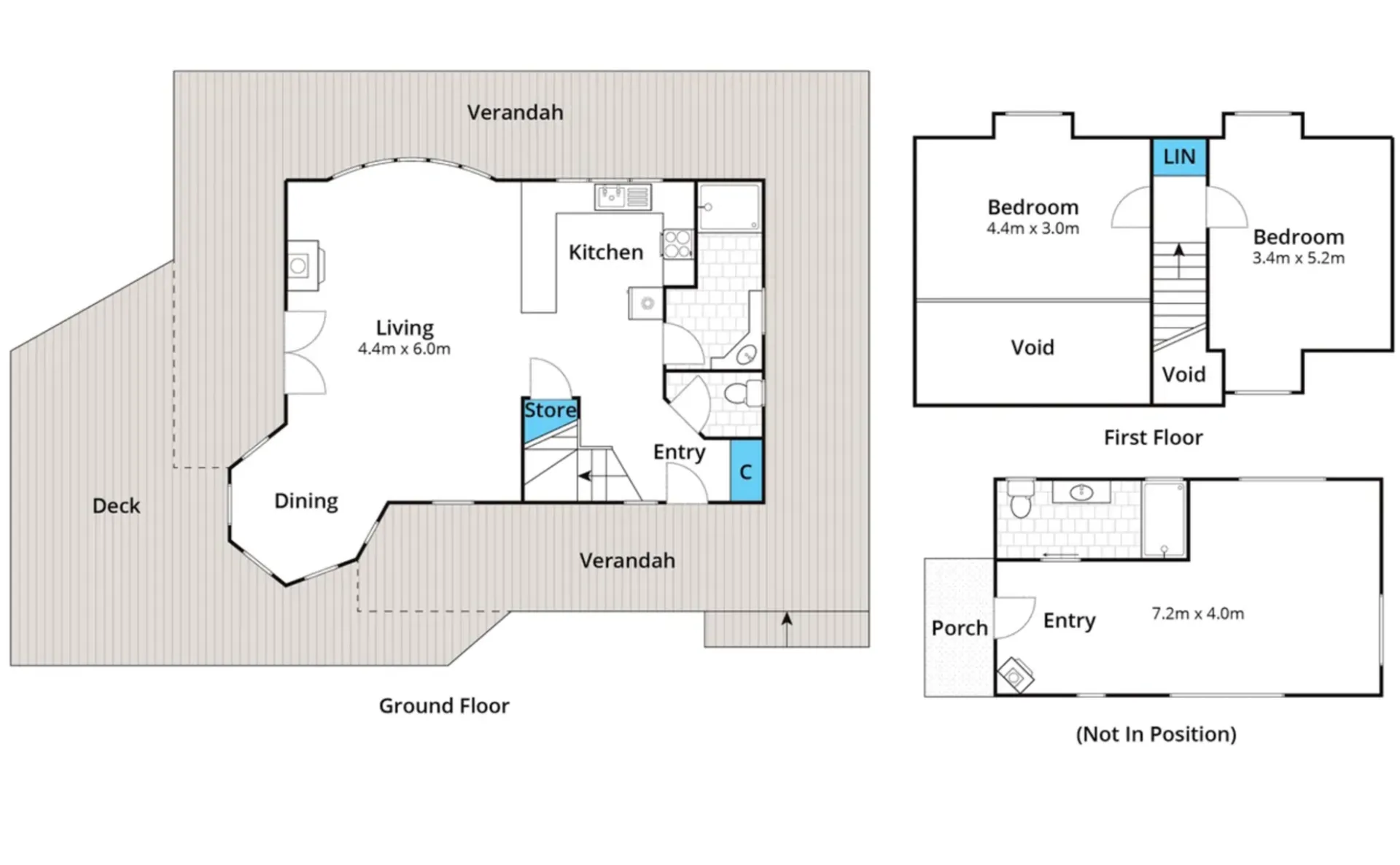 - Bathroom 1 - in main house: Shower Bath Combo, Seperate Toilet, Vanity, Laundry Bath Combo