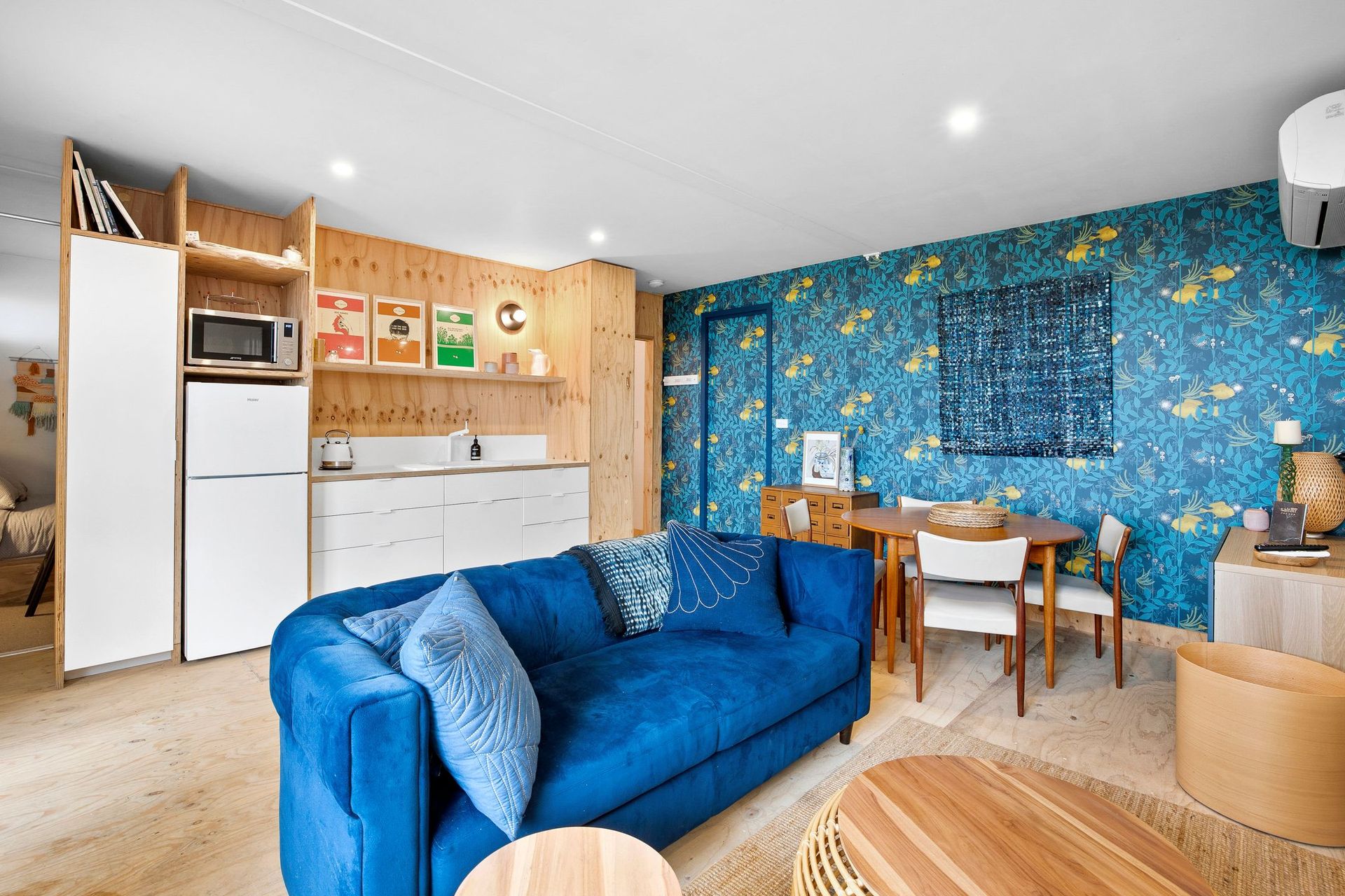 The home is two storey with both internal and external access to each level. The ground floor, formerly a self-contained two-bedroom guest suite with bathroom & kitchenette now connects up top making it ideal for finding some separation if required. With a king-sized bed in one bedroom, and a double and single top bunk bed in the other, living zone and kitchenette, it’s a comfortable set up in itself.
