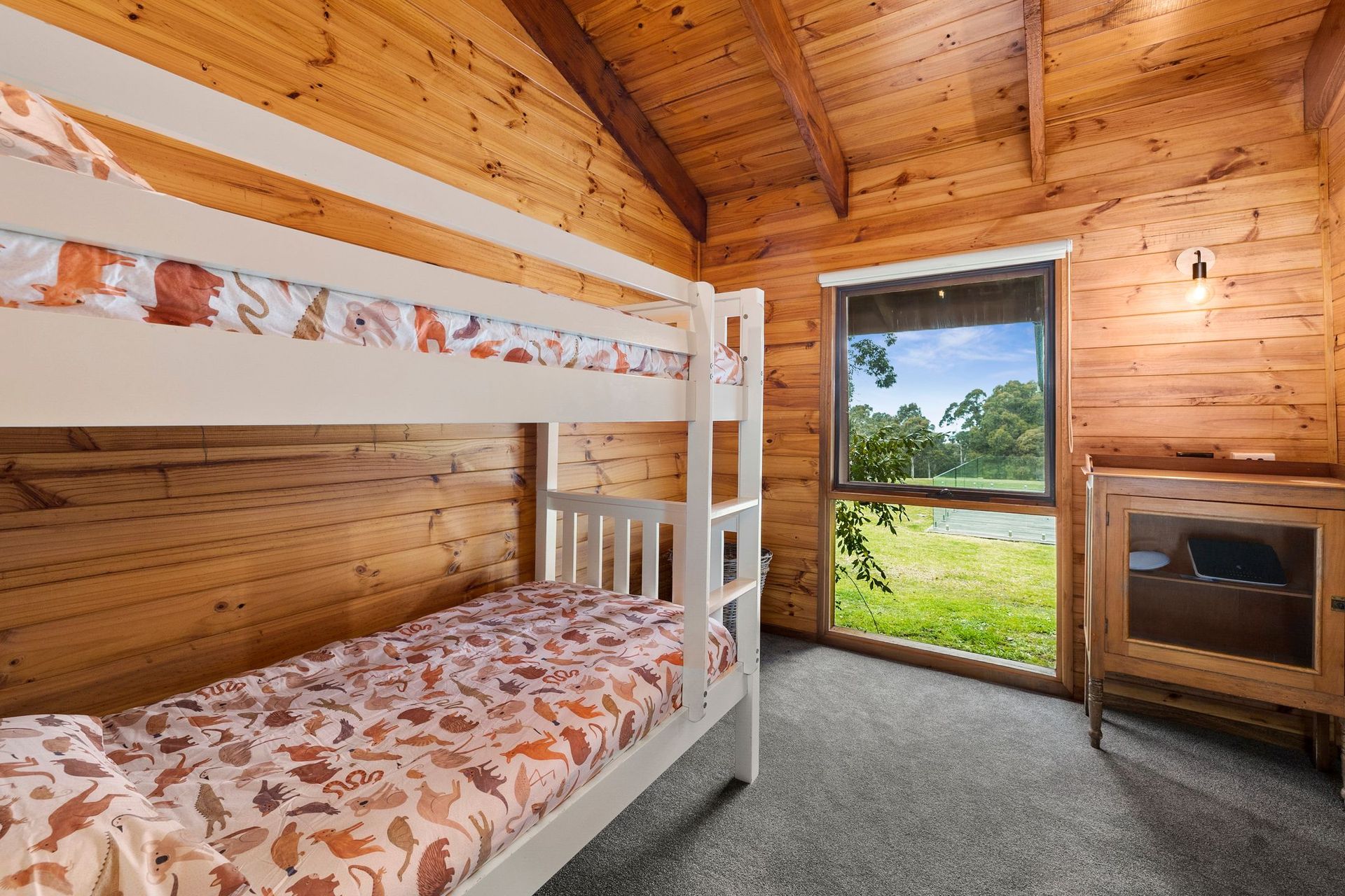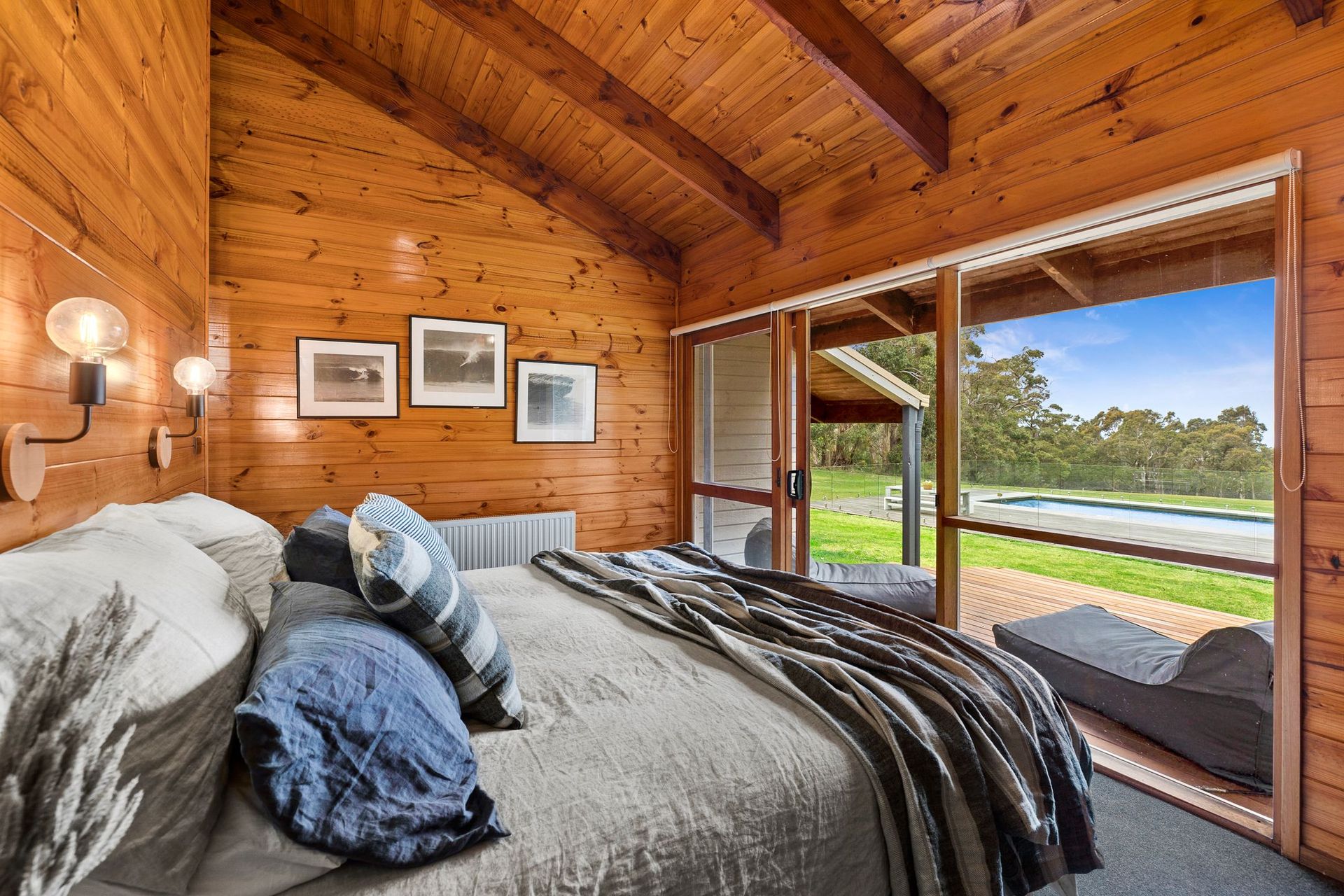 The second master with ensuite has views of the pool and surrounding bush. This bedroom also opens onto a deck perfect for sipping your morning cuppa whilst watching the kids run around enjoying the big open spaces.